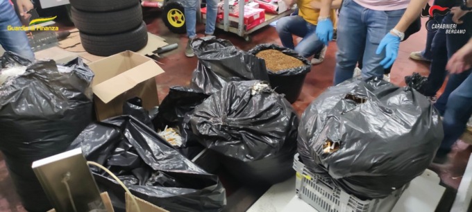 Da fuori, sembrava un capannone come altri, nella zona industriale di Casazza. Dentro c’erano invece i macchinari necessari al confezionamento clandestino di sigarette di contrabbando, tra cui un essiccatore industriale, il tabacco utilizzato e i relativi materiali (centinaia di milioni di filtri, bobine di carta e stampe di pacchetti) riportanti il marchio contraffatto di una nota società di produzione di sigarette.