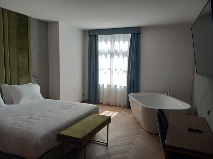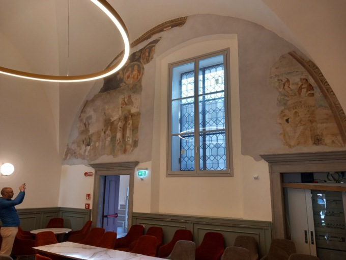 Nonostante ciò, nel tour che gli Istituti – rappresentati dal presidente Luigi Sorzi e del consigliere Mauro Bonomelli – hanno concesso in anteprima alla stampa, è già stato possibile osservare la bellezza dell’hotel e, soprattutto, il grande lavoro che è stato fatto nel recupero e restauro degli antichissimi affreschi e dipinti. Il risultato finale è un albergo quattro stelle superior con 81 camere, bar e ristorante, una sala conferenze e una Spa, il tutto distribuito su circa quattromila metri quadrati di superficie.