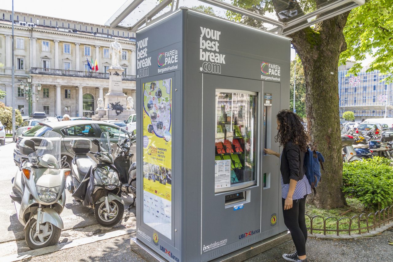 Distributore di cultura. Il distributore di cultura – come quello di bibite e merendine – raddoppia: infatti oltre che sul Sentierone, sarà a disposizione del pubblico e di quanti si troveranno a passare per Piazza Vecchia durante il weekend conclusivo di Bergamo Festival. Oltre ai testi editi dal festival, il distributore erogherà confezioni con piccole quantità di sementi: i “semi della pace”. Un invito simbolico a diffondere i valori del festival e a diventare coltivatori di pace e giustizia. E in collaborazione con UniAcque, durante gli eventi verranno distribuite delle borracce personalizzate con messaggi legati al tema dell’acqua come bene comune e prezioso. Uno spunto per riflettere una volta di più sull’importanza di questo elemento, risorsa e fonte di vita, da preservare per il bene dell’umanità.