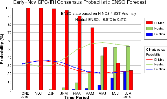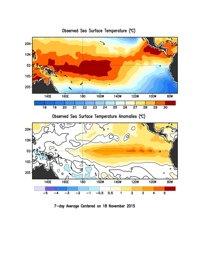 Cosa ha combinato El Niño. Il National Oceanic and Atmospheric Administration e il Metoffice, due importanti enti metereologici, rispettivamente, statunitense e inglese, hanno riscontrato che in ottobre El Niño ha raggiunto un’intensità pari a 3,4, sulla scala speciale che ne misura la forza. Nel 1997, anno in cui la sua influenza sul clima è stata notevole, era di 2,8. Cioè, molto di meno. In effetti, le conseguenze dell’anticiclone sono già sotto i nostri occhi. Il mese scorso la Danimarca ha avuto il mese più secco dal 1972, in Lituania è stato il più secco da quando si registrano dati meteo, in Africa centrale è stato il più caldo, i ghiacciai dell’Artico sono diminuiti del 13,4 percento, mentre quelli dell’Antartico sono cresciuti del 1,2 percento. E non finisce qui: rispetto alla media dell’ultimo quarto di secolo, Cile e Argentina sono stati più freddi, fino a 3 gradi in meno, Australia e America del Nord-Ovest sono più calde di 3 o 4 gradi, mentre Russia e Giappone sono diventati più freddi di un paio di gradi.