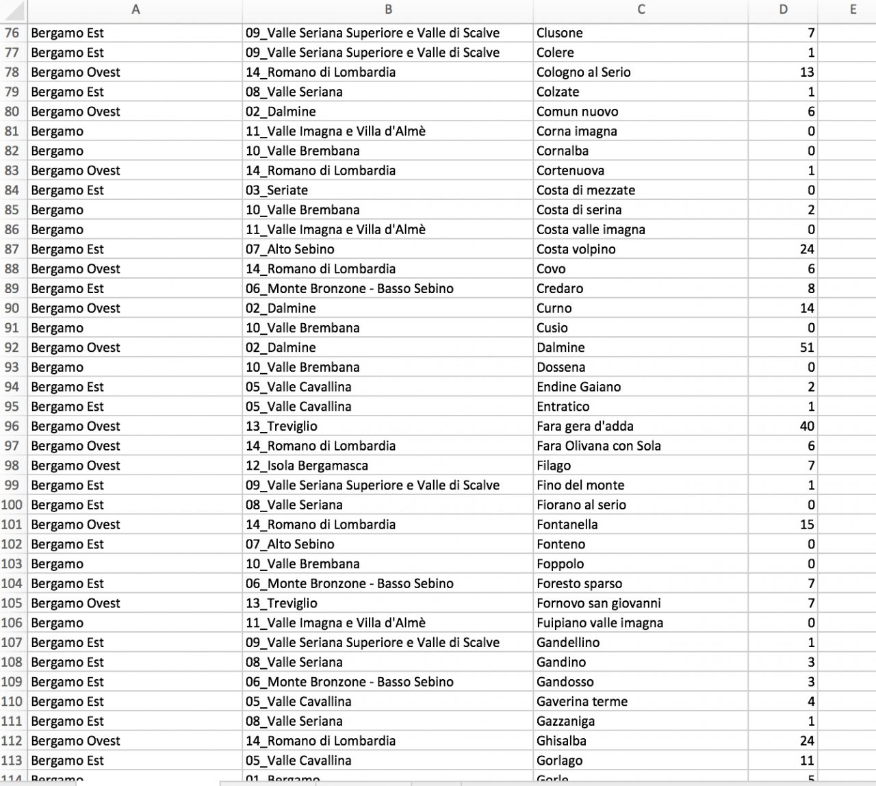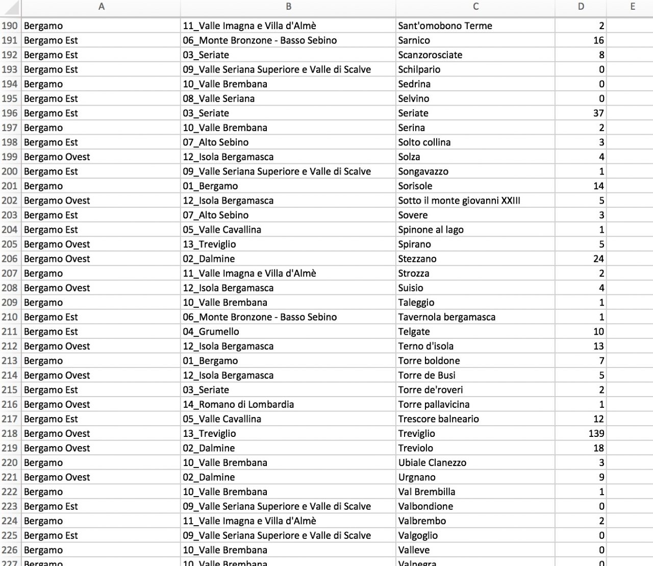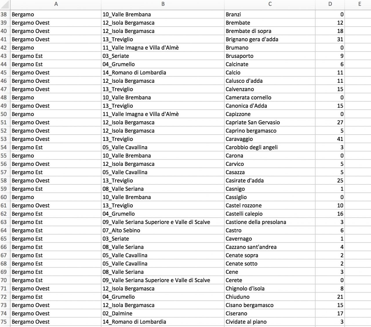 Bergamo e Treviglio (oltre che la bassa) le città con il maggior numero di contagi. Sono 58 i Comuni dove non è stato registrato alcun nuovo caso