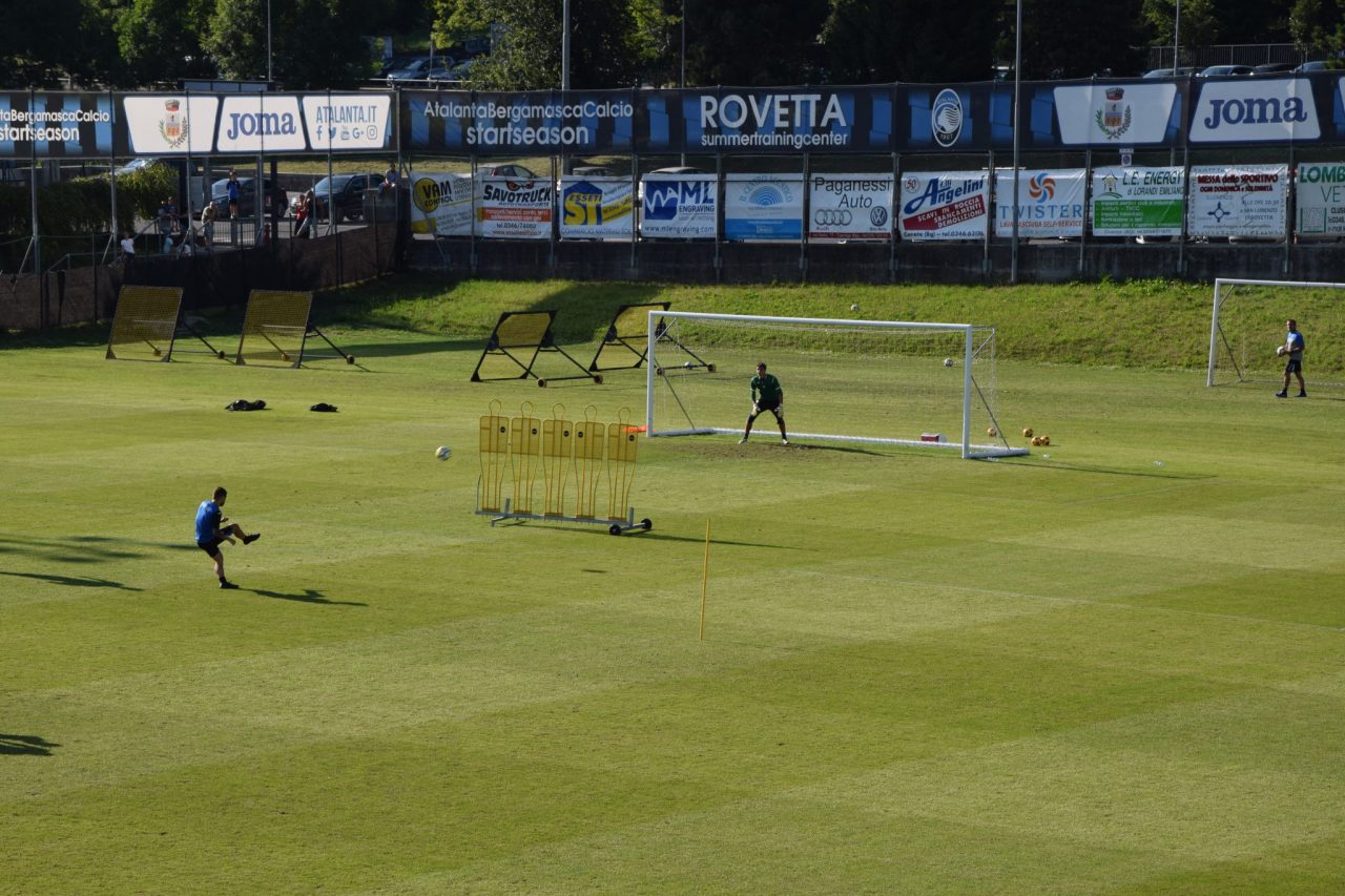 Lavoro sul campo. Dopo gli esercizi in palestra e il consueto riscaldamento tecnico, il gruppo si è diviso in due: mister Gasperini ha lavorato sull’uscita palla al piede dalla difesa, schierando le due prime linee in uno spazio ristretto e sottoponendole al pressing di quattro giocatori; il resto del gruppo invece si è allenato al tiro. Ogni volta che Gomez era in procinto di tirare, i piccoli calciatori dell’Atalanta Football Camp hanno intonato il coro «Papu, Papu, Papu», scatenandosi quando le conclusioni dell’argentino hanno bucato la resistenza degli estremi difensori. La giornata di duro allenamento ha avuto il suo sfogo nella partitella finale, proverbialmente amata dai giocatori di qualsiasi categoria. Da notare che inizialmente il Papu e Ilicic non hanno partecipato, dedicando un po’ di tempo a provare qualche calcio di punizione: i loro piedi fatati possono fare male da calcio da fermo e lo sloveno in particolare sembra poter colmare la lacuna annosa che l’Atalanta ha mostrato in questo senso (nella gallery puoi trovare una sequenza fotografica di una sua precisissima realizzazione).