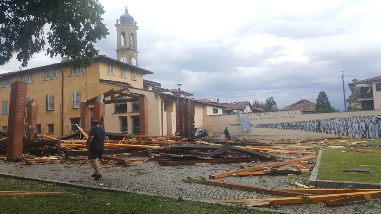 Qui una tromba d’aria (il video è disponibile a QUESTO LINK) ha distrutto il tetto del centro civico “Scaravaggi” e divelto la tettoia del portico della biblioteca. Ma la bomba d’acqua e il tornado hanno danneggiato anche diverse abitazioni private e comunali, la farmacia e l’archivio di via San Lino.