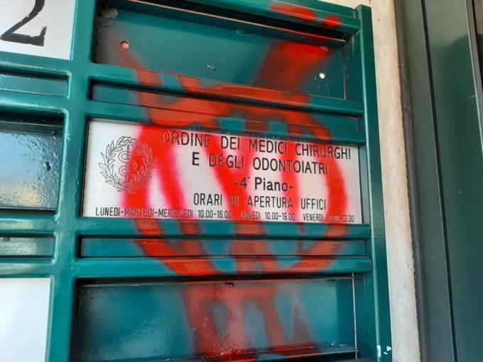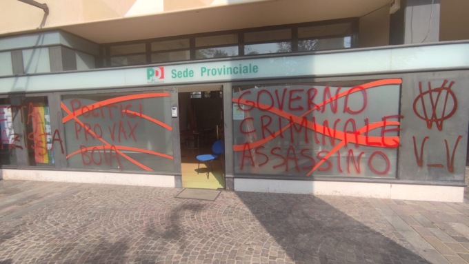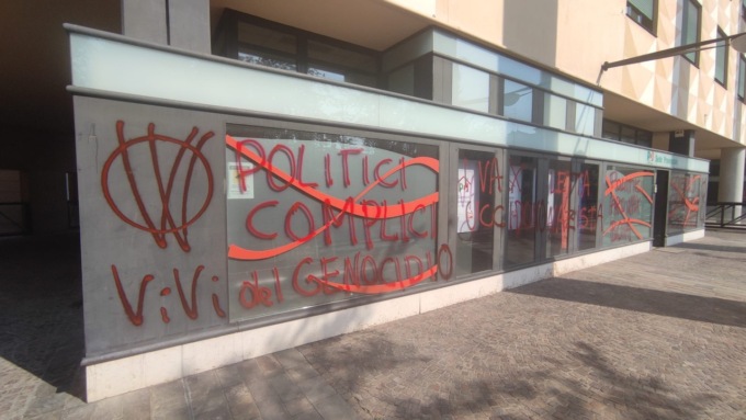 I bersagli presi di mira sono stati la sede dell’Ordine dei medici della provincia di Bergamo e la sede provinciale del Partito democratico, dove ignoti hanno scritto anche insulti indirizzati al segretario Enrico Letta e, in generale, ai «politici complici del genocidio». I tempi e le modalità fanno pensare che la mano del responsabile sia una sola, che ha agito sia in via Manzù (dove si trova la sede dell’Ordine) che in via San Lazzaro (sede provinciale dei dem).