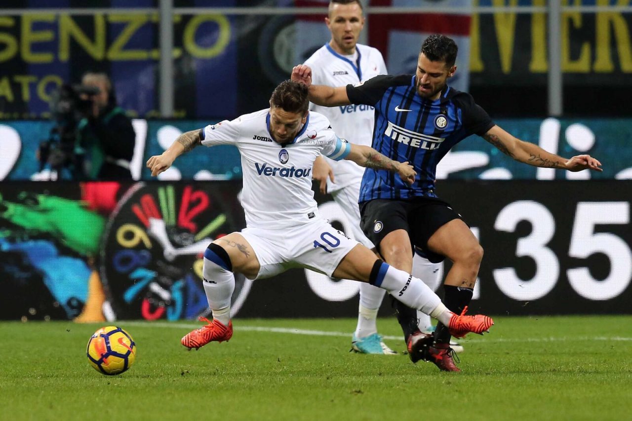 Il ballottaggio Petagna-Cornelius? Lo vince Kurtic. Grossa sorpresa per l’Atalanta di Gasperini al Meazza: contro l’Inter il tecnico di Grugliasco vara il 3-4-3 fantasia scegliendo Gomez e Ilicic insieme a Kurtic davanti per dare meno punti di riferimento possibili alla difesa interista. Sulla linea di centrocampo, il vice Spinazzola è Castagne (vinto il ballottaggio con Gosens) mentre in mezzo giocano de Roon e Cristante vista la squalifica di Freuler. Senza Caldara, la difesa è composta da Toloi e Masiello con Palomino deputato alla marcatura di bomber Icardi. Nell’Inter, tutto confermato a parte Santon per Nagatomo, il 4-2-3-1 lancia Candreva e Perisic ai lati del bomber argentino con Borja Valero a supporto e la coppia Gagliardini-Vecino in mezzo. Serata fredda al Meazza, oltre 52mila spettatori con circa duemila bergamaschi presenti nel settore ospiti. Nella prima frazione di gioco la partita è un po’ bloccata, l’Atalanta fa tanta densità sulle linee di passaggio verso gli esterni (soprattutto Perisic) con Gomez e Ilicic che cercano di costruire gioco negli ultimi 30-35 metri supportati da Kurtic. Ne esce una gara tosta dal punto di vista fisico con i giocatori interisti impegnati a cercare una soluzione avanzata e quelli orobici pronti a ripartire. Al 10’ Gagliardini (ex di giornata) calcia da lontano senza grosse pretese ma la prima vera parata della serata è di Handanovic: al 16’ Hateboer e Ilicic combinano a destra, il numero 33 olandese si incunea in area e scarica un rasoterra pericolosissimo che il portiere dell’Inter neutralizza in due tempi. L’equilibrio del risultato si ristabilisce anche nel numero di occasioni fermate dal portiere al 25’: un tacco illuminante di Borja Valero pesca Icardi alle spalle di Palomino ma il numero 9 argentino scarica un destro secco dal limite dell’area che Berisha respinge senza affanno. Nell’ultima parte del primo tempo, Icardi sfiora un paio di volte il bersaglio con tocchi ravvicinati imprecisi e al 40’ il capitano dell’Inter reclama un rigore (intervento dubbio) ma Fabbri dice di proseguire anche dopo un silent check con il Var.