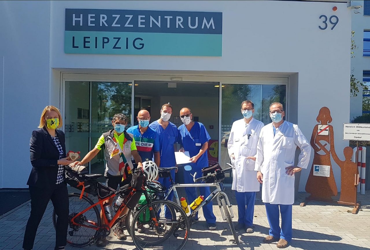 Il Tirolo, il fiume Inn, la Baviera, l’arrivo a Bamberg, il benvenuto dell’amministrazione comunale, il coro della via che cantava Bella Ciao. «Se penso a quel momento mi vengono ancora i brividi. Noi abbiamo cantato con loro, è tutta una via che ha creato un coro e fanno le prove tre volte alla settimana, una cosa straordinaria». Quindi altri trecento chilometri e l’arrivo a Lipsia, l’incontro con i medici, la consegna della targa che aveva affidato ai ciclisti Felice Perani di Casnigo, che nella clinica di Lipsia ha passato tre mesi e alla fine è guarito.