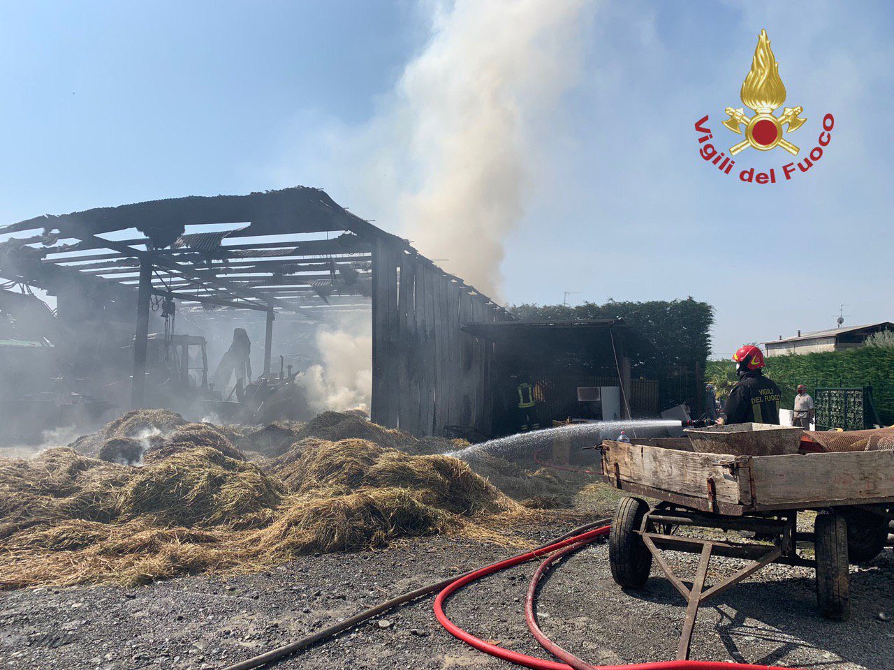 Incendio in un fienile a Bolgare, le foto dell’intervento dei Vigili del Fuoco