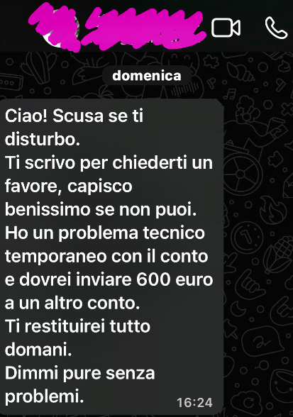 Nella serata di venerdì 26 dicembre la truffa, che questa volta corre su WhatsApp. I malintenzionati, una volta intrufolati nel cellulare della vittima, hanno inviato questo messaggio a nome suo a tutti i suoi contatti: «Ciao! Potresti per favore votare per Giulia in questo sondaggio? È la figlia di una mia amica. Il primo premio è una borsa di studio gratuita per il prossimo anno. È davvero molto importante per lei. Grazie mille!».