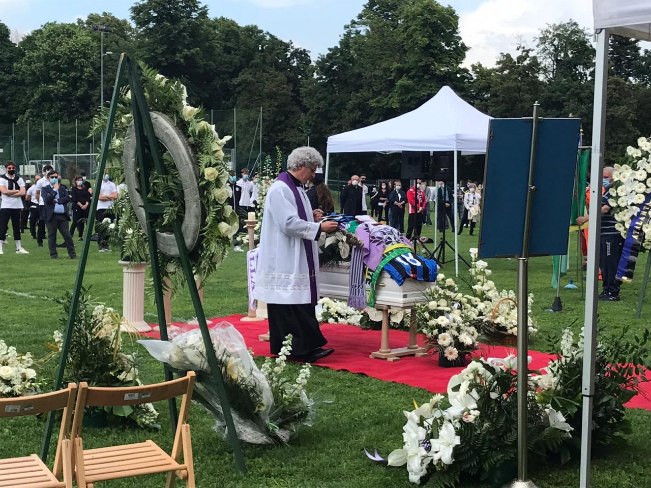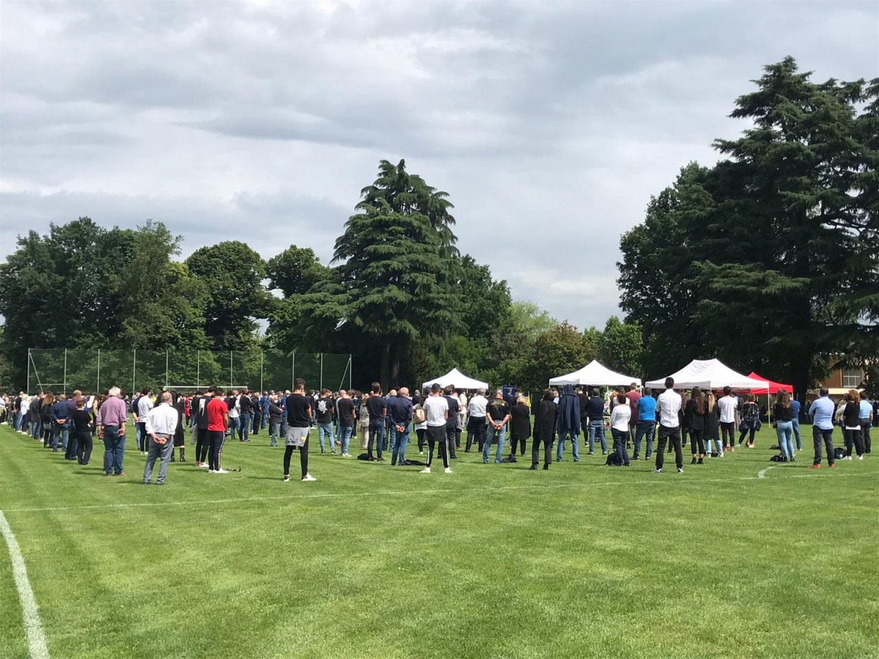 Al campo sportivo di Cermenate si sono svolti i funerali del ragazzo cresciuto nel vivaio nerazzurro e morto per un aneurisma. Tantissimi i presenti, tra commozione e striscioni
