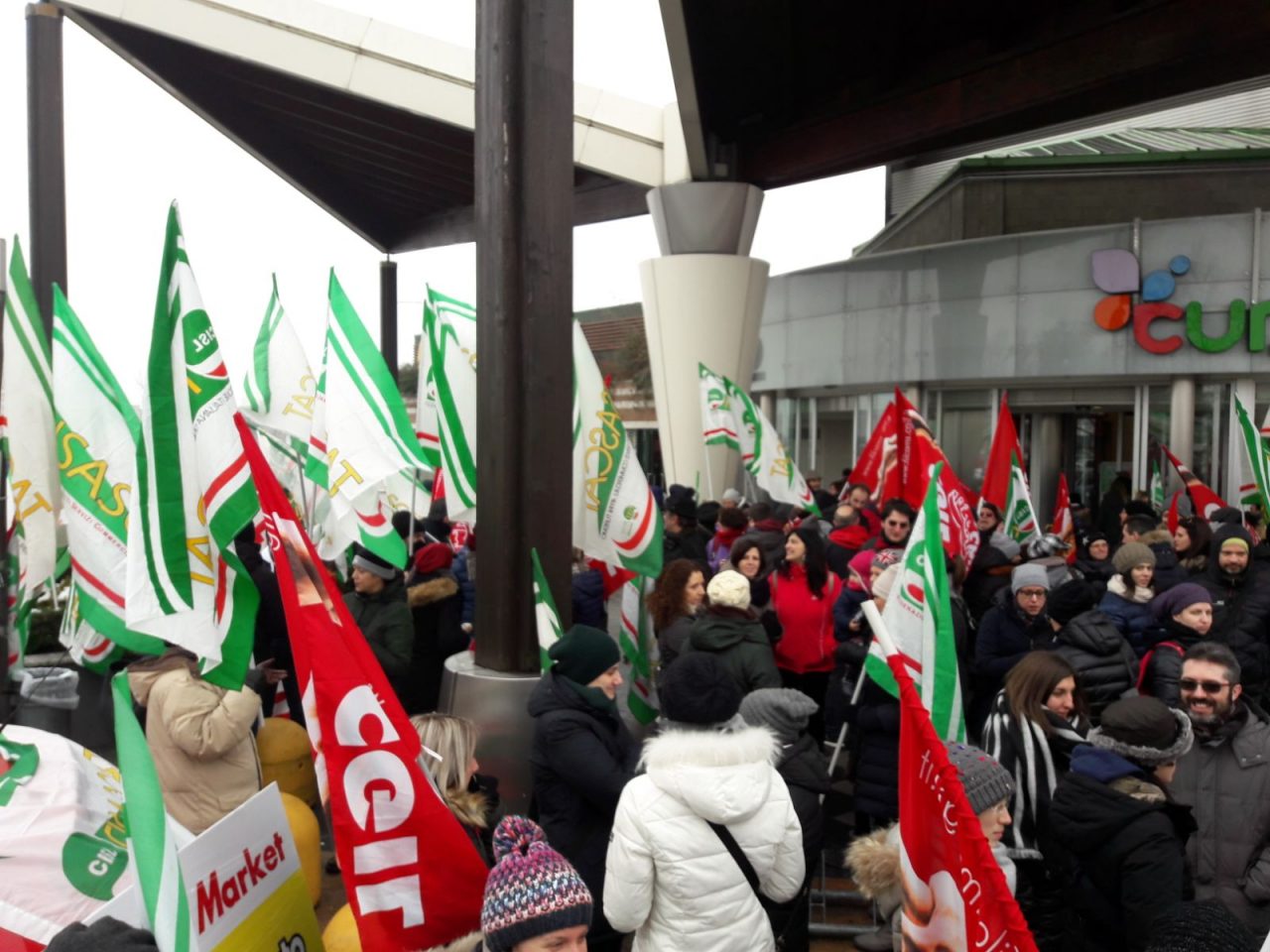 Domani si replica. Oggi sabato 3 marzo, altro sciopero e altro presidio, ma per i punti vendita, che nella Bergamasca sono tre: Orio, Stezzano e sempre Curno. L’azienda ha comunicato infatti che presumibilmente a partire da maggio unilateralmente taglierà la maggiorazione domenicale, portandola dal 90% al 30%, secondo quanto previsto dal Ccnl.