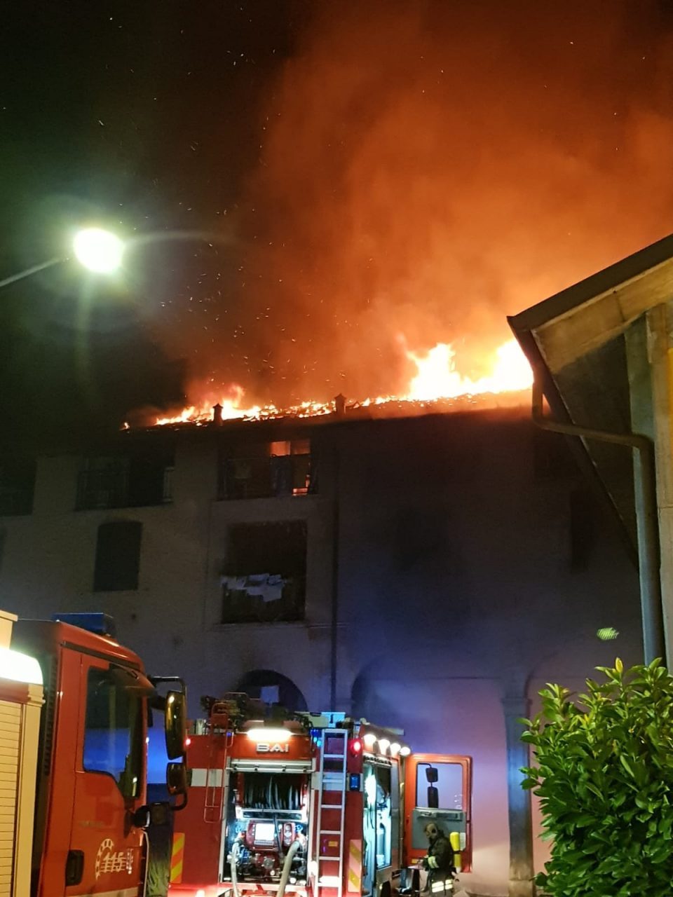 Un incendio ha devastato questa notte una palazzina di Romano, in via Montecatini 8, zona Cappuccini. Cinque le squadre dei Vigili del fuoco al lavoro per spegnere l’incendio che ha letteralmente distrutto la struttura, dal pianterreno fino al tetto. Stando alle prime informazioni, il rogo ha avuto origine da un’officina sita al pianterreno, sede di un gommista.