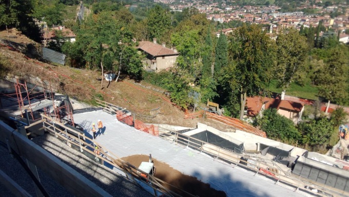 Per realizzarlo però sono state messe in campo tecniche e tecnologie di rilievo. Dalla riprogettazione alla costruzione dell’enorme muro di contenimento, passando per i materiali trasportati attraverso una teleferica per evitare la circolazione di mezzi pesanti fra le porte storiche di Bergamo Alta, riducendo anche l’inquinamento.