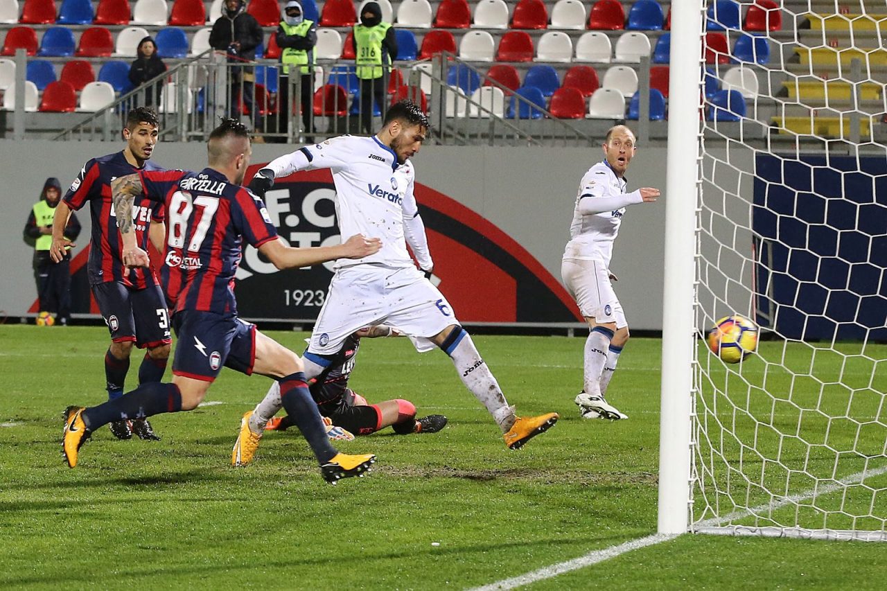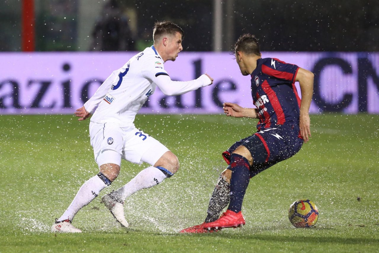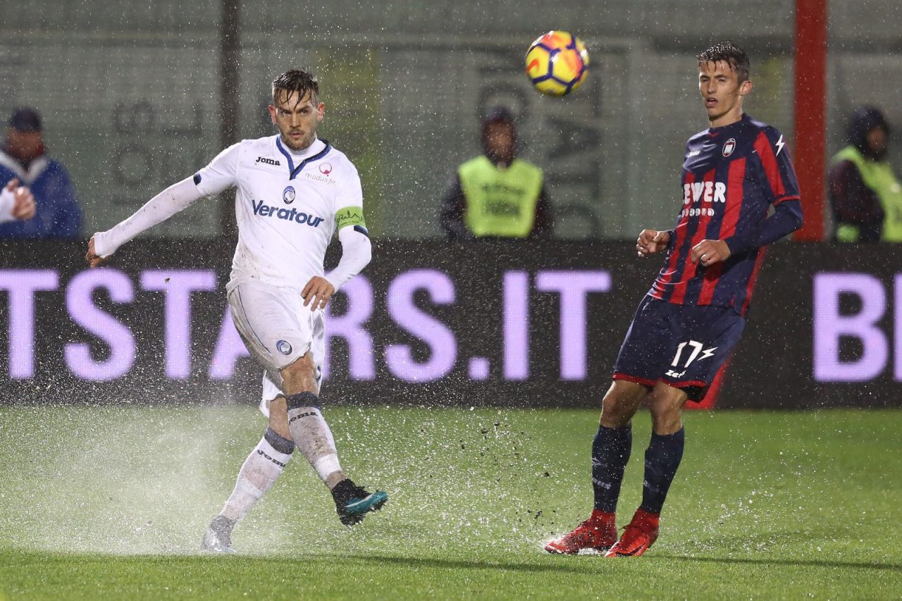 Sotto una pioggia battente e con il campo che spruzza acqua ogni volta che un piede tocca terra o il pallone rotola, la gara inizia con le squadre che provano a fare qualcosa di interessante ma è veramente difficile parlare di calcio quando la disciplina che si pratica allo Scida assomiglia più alla pallanuoto. La Dea ci prova con Cristante al 6’ (assist di Cornelius, Massa fischia un fallo inesistente) e al 12’ la combinazione tra Toloi e Cornelius è interessante ma il sinistro di Petagna finisce in Curva. Il Crotone è avvantaggiato dal terreno di gioco, grinta e foga agonistica aiutano i padroni di casa a spingere e al 16’ un tiro senza pretese di Ceccherini da oltre quaranta metri viene respinto con un paio di pasticci da Berisha e la palla termina sul fondo. L’occasione più importante del Crotone in tutto il primo tempo è firmata Nalini (19’): il destro in corsa del numero 9 dei calabresi è splendido quanto il volo d’angelo di Berisha che toglie la palla dall’incrocio dei pali. L’Atalanta al 24’ guadagna una punizione dal limite, il sinistro di Ilicic è velenoso ma Cordaz si tuffa e riesce a deviare in angolo; poco più tardi è de Roon a provare con un destro da fuori area (25’) e la deviazione di un difensore al limite mette spiazza Cordaz, ma la palla finisce sul fondo regalando solo un calcio d’angolo ai nerazzurri. Il primo tempo è tutto qui, a parte una discutibile ammonizione per Palomino (35’) non succede nulla di interessante e francamente è complicato pensare di fare di più in simili condizioni.