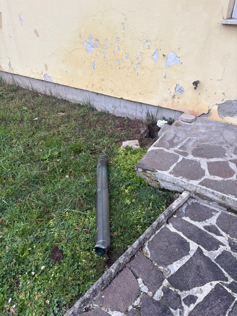 I tubi si trovavano principalmente sul lato che affaccia via Papa Giovanni XXIII, ma sono state colpite anche le facciate nella parte vecchia della scuola. Questo perché sul retro, dove si trova il cortile, quando sono stati eseguiti i lavori si era scelto di installare pluviali in laminato e non in rame.