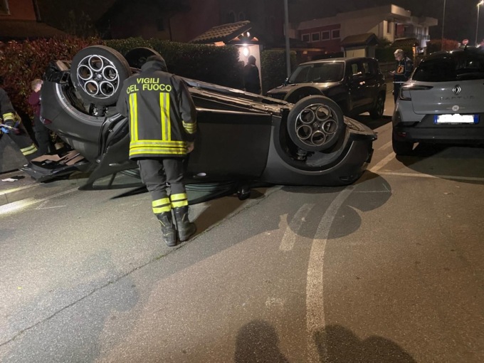 Si ribalta l’auto dei ladri inseguiti dalla polizia a Brignano Gera d’Adda: cinque arrestati