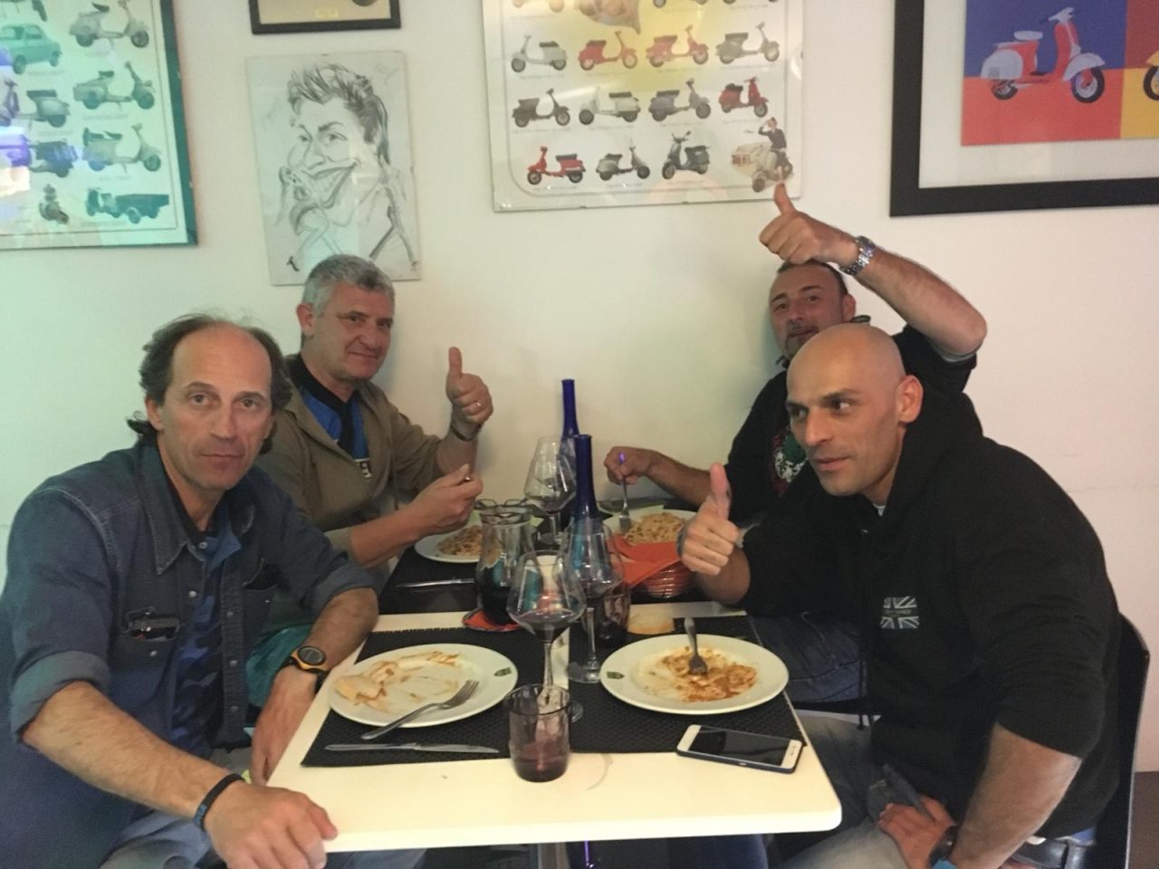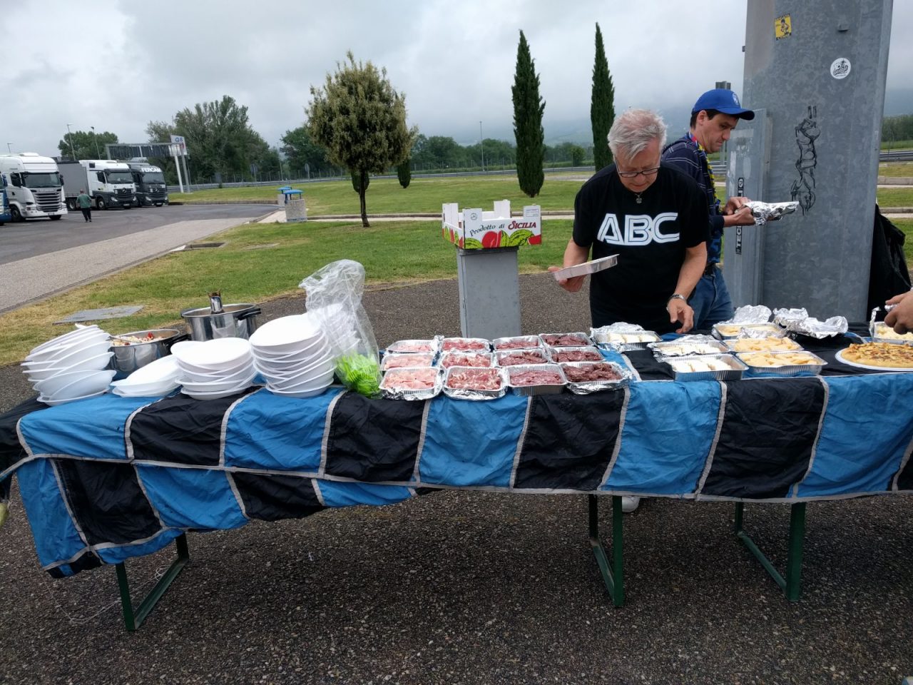 Chei de la Coriera, diversamente da altre volte, hanno scelto di programmare il “pit-stop” dedicato al cibo in una piazzola di sosta umbra e stavolta, invece dei soliti panini, Marco e Lissa hanno optato per pasta e riso freddo, prosciutto e salame, oltre a formaggio e dolci. Un banchetto nerazzurro volante allestito in un batter d’occhio che ha soddisfatto davvero tutti. L’appuntamento a Roma Nord con tutti gli altri mezzi è stato rispettato in pieno, ma il tempo dedicato dalla polizia capitolina ai controlli è andato ben oltre le aspettative.