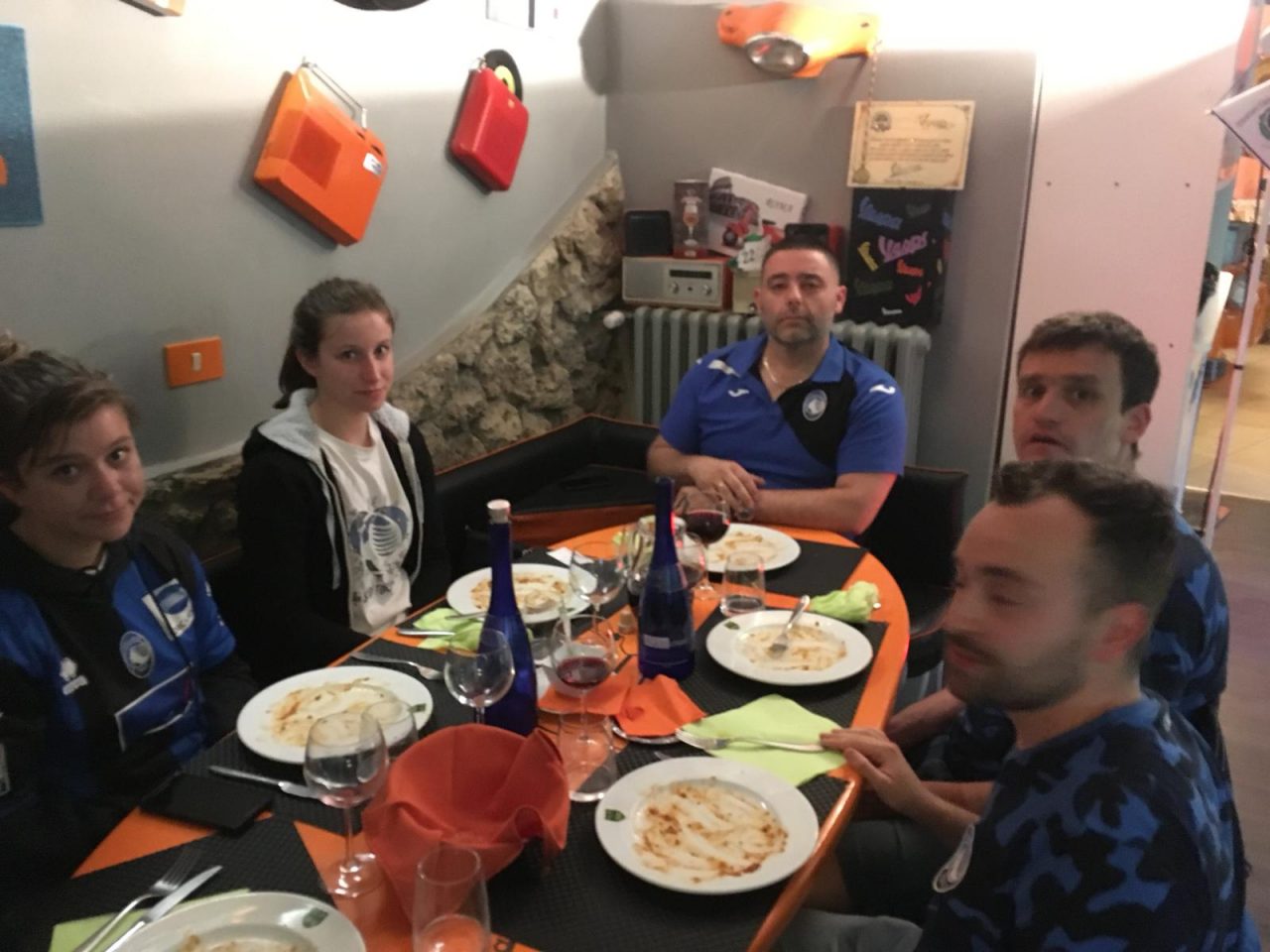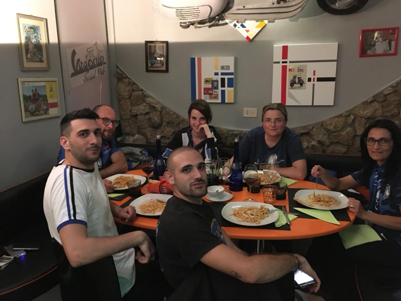 Il rientro, a chi troppo e a chi nulla. I più veloci sono riusciti a tornare in treno, quelli in bus l’hanno un po’ allungata nei tempi, ma chi davvero ha fatto bingo sono gli amici di Chei de la Coriera. Dopo circa 200 km di viaggio, Marco e Lissa hanno organizzato per tutti una cena tipica in trattoria vicino a Chiusi e il successo è stato completo. Piatti abbondanti, grandi cori e una serie infinita di applausi per tutti a cancellare un po’ la delusione per il risultato e per una gestione dell’avvicinamento e dell’uscita dallo stadio abbastanza complicata: alle 18.45 della domenica, far passare otto bus in zone vicine al centro storico di Roma, non è parsa un’idea troppo intelligente.