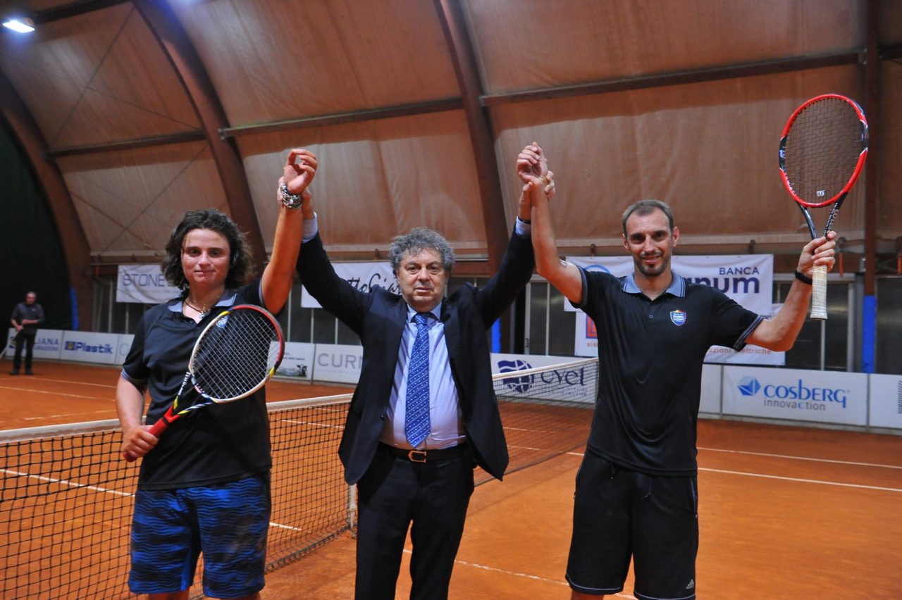 La doppietta di Damiano Zenoni è la ciliegina sulla torta delle finali del Tennis 2018, disputate ieri sera, giovedì 7 giugno, sulla terra rossa del Centro «Mongodi» di Cividino. L’ex atalantino trionfa nel singolare maschile A dedicato alla memoria di Giacinto Facchetti, bissando il successo ottenuto lo scorso anno: per l’ex calciatore l’ultimo atto è il trionfo per 7-5 6-7 9-4 su Filippo Carrara, al termine di un match intensissimo. Va agli imprenditori Luca Chiesa e Paolo Agnelli il 27° Trofeo Achille e Cesare Bortolotti di doppio maschile: la gioia finale arriva grazie al 9-3 sull’imprenditore Antonio Viscardi e l’ex bomber Beppe Savoldi. La Coppa Accademia dello Sport di doppio misto è appannaggio della coppia formata dall’imprenditore Andrea Schillaci e da Simona Befani, volto noto di Bergamo Tv, che alza il trofeo imponendosi per 9-4 sul duo composto da Oscar Magoni, ex calciatore di Atalanta e Napoli, e Cristina Radici, presidente di PLAY Sport Academy. Sfida tra professionisti per il 5° Torneo Franco Morotti di singolare maschile B: il trofeo è dell’avvocato Massimo Buzzanca, capace di superare per 9-5 l’imprenditore Roberto Paratico. Nel torneo di singolare maschile per classificati Fit, vittoria finale per l’imprenditore Luca Chiesa contro l’assicuratore Ciro Bresciani. Gioia collettiva per il team Lendl capitanato dall’imprenditore Antonio Viscardi, che arrivano al successo nella Coppa Banca Mediolanum (competizione a squadre).