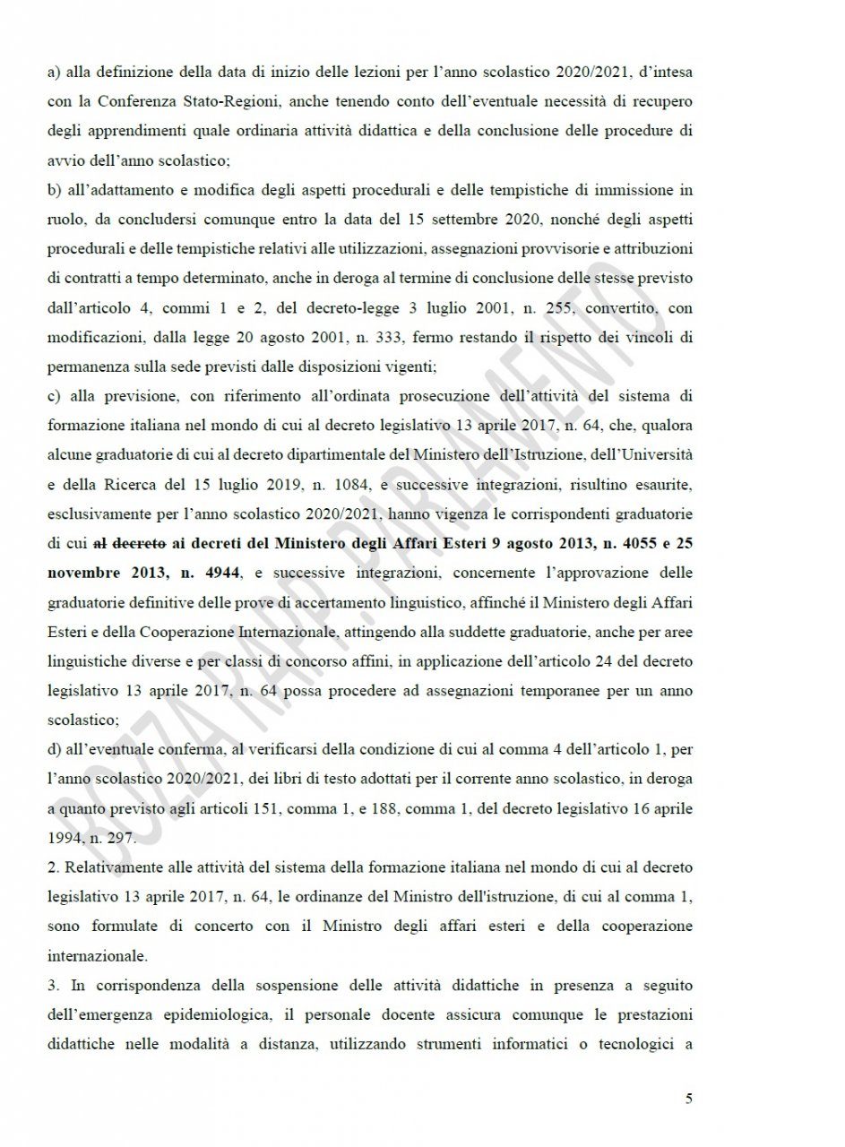 Altre decisioni. Oltre a questo, il decreto prevede anche la proroga di un anno delle graduatorie di istituto attualmente vigenti, compresi i relativi elenchi aggiuntivi da compilarsi, per la finestra di inserimento del 2020/’21, entro il 31 agosto 2020, valevole anche per i soggetti in possesso del solo titolo di specializzazione sul sostegno; l’anticipazione delle graduatorie al 2020/’21 con immediata efficacia dal 2021/’22; il concorso per 4.500 posti in sostituzione dei pensionati con quota 100.