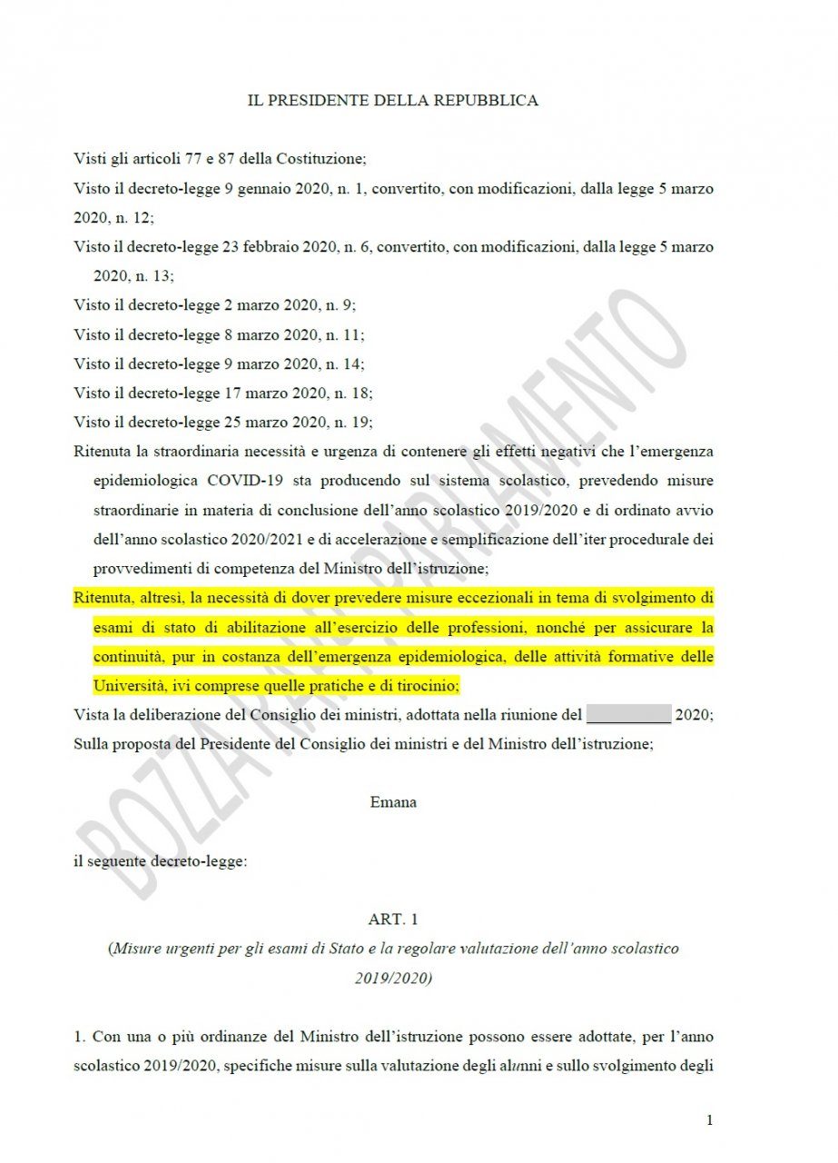 Comunque vada, l’esame di maturità ci sarà. Bisogna vedere solo come ci si arriverà: se ancora con le scuole chiuse o con gli alunni tornati in classe. È stato approvato poco fa (lunedì 6 aprile) dal Consiglio dei Ministri il “Decreto Scuola”, un provvedimento complesso data la situazione che sta vivendo l’Italia e che per questo prevede due opzioni diverse di sviluppo.