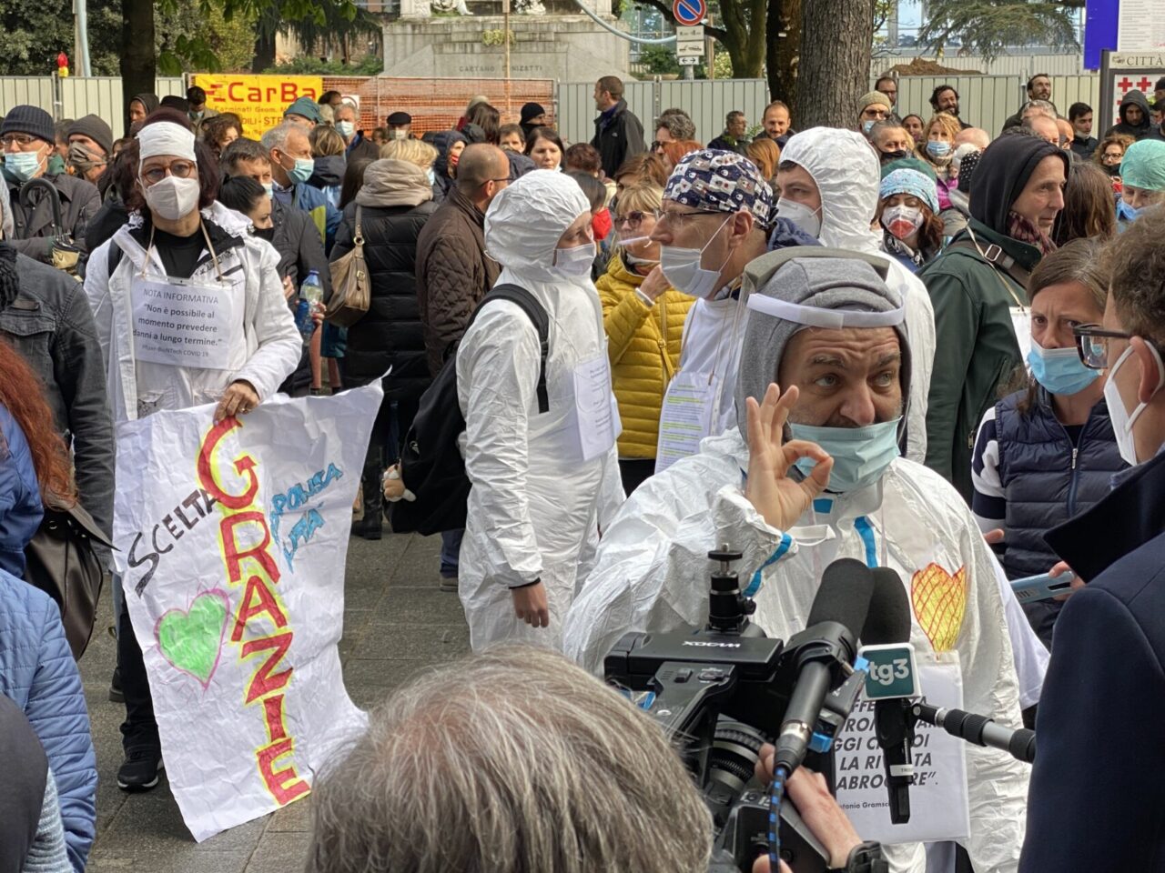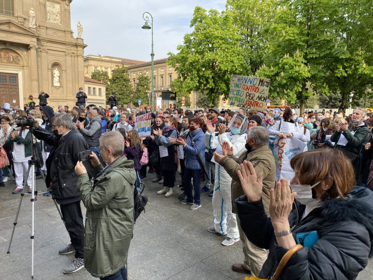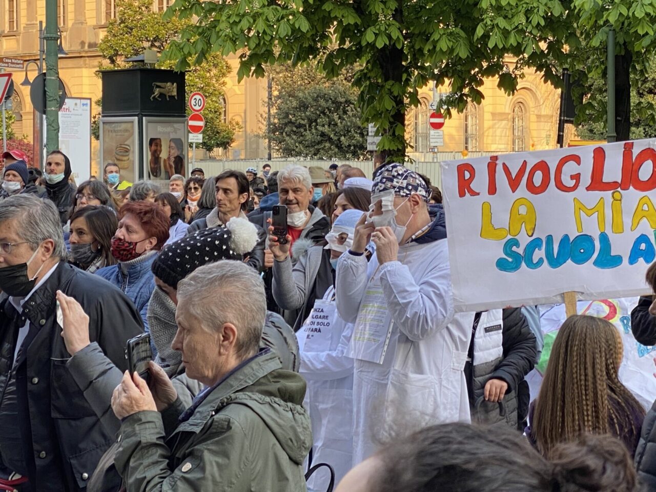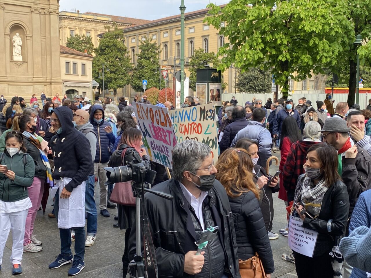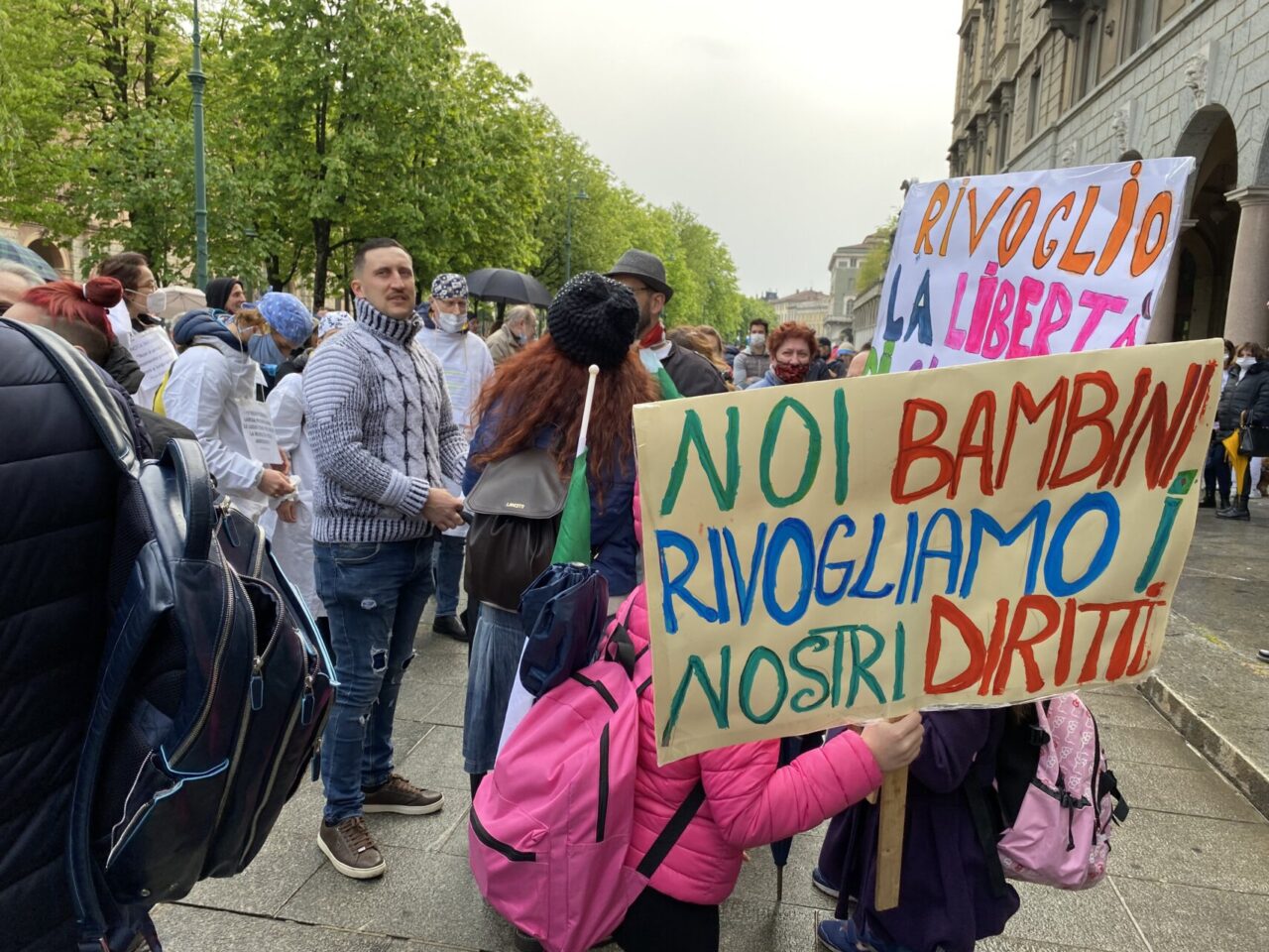 Tra un coro e l’altro al grido di «Libertà! Libertà!», interventi e cartelli che sottolineavano che «pretendere la verità e la libertà non è essere negazionisti. Basta etichette», il Sentierone si è riempito di giovani, adulti e genitori con figli al seguito: «Cittadini liberi – sottolineano -, liberi pensatori, orfani di partito e senza un’opposizione che è alla base della democrazia».