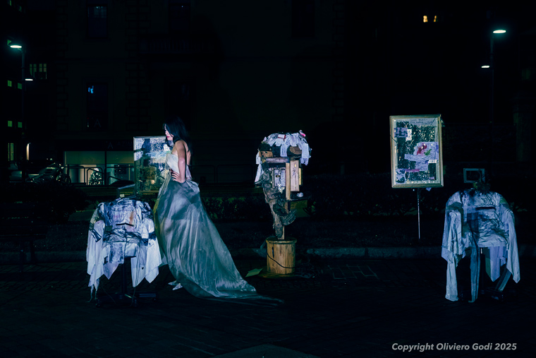 Negli scatti, le installazioni non vengono stravolte, ma reinterpretate attraverso luci, inquadrature e atmosfere che ne esaltano il rapporto con lo spazio urbano.