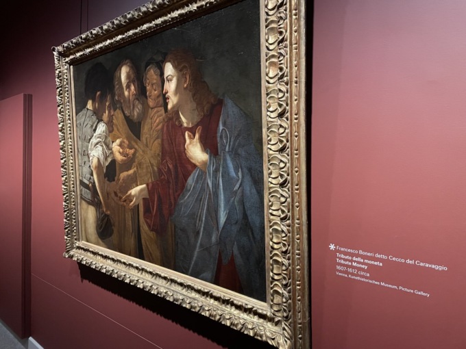 Sono più di 40 i quadri esposti in questa parte, un percorso piacevole, che alterna dipinti di mano del Cecco, alcuni ancora misteriosi e ricchi di una simbologia da sciogliere, come il Fabbricante di strumenti musicali, a dipinti dove il pittore è ritratto proprio dal maestro Caravaggio.