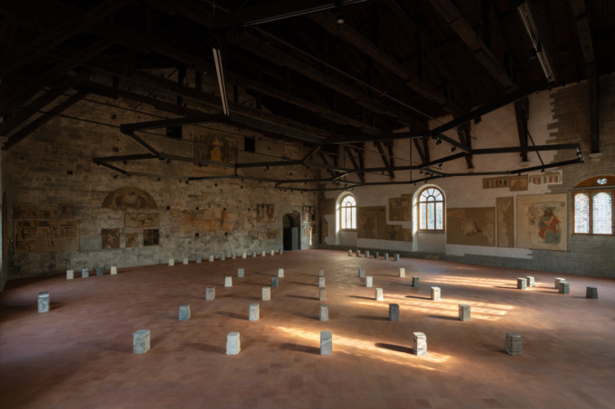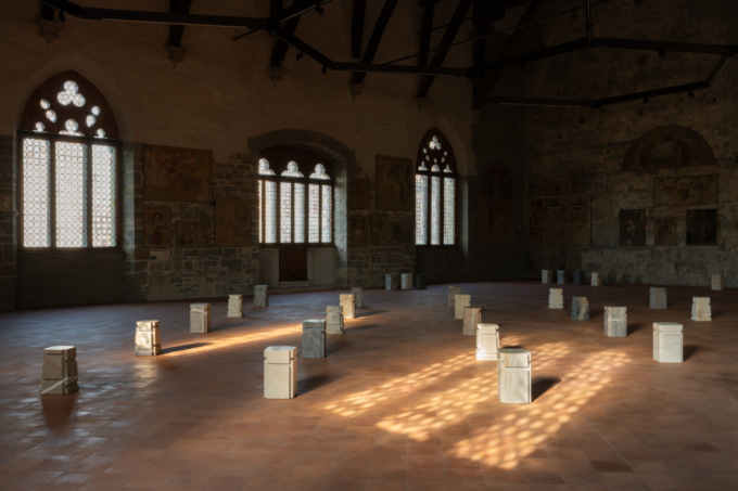 La mostra, a cura di Lorenzo Giusti e Sara Fumagalli, ha stimolato una riflessione sull’esperienza della pandemia: le sessanta sedute evocavano la presenza e al contempo l’assenza di altrettante persone, e le differenti disposizioni studiate dall’artista rimandavano all’obbligo del distanziamento sociale oppure, al contrario, a una prossimità ritrovata. Le sculture hanno costituito un invito a sostare nella Sala delle Capriate, per viverla come luogo di scambio e relazione, di vicinanza e condivisione.