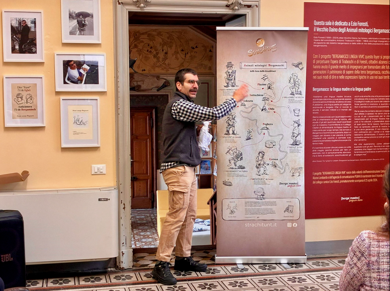 Momento clou della mattinata è stato infatti il convegno dal titolo “Parla come mangi” dedicato alla lingua bergamasca, in occasione della giornata nazionale del dialetto e delle lingue locali, anticipato dall’inaugurazione della mostra pittorica “Quel paese” dell’artista locale Mirco Adobati.