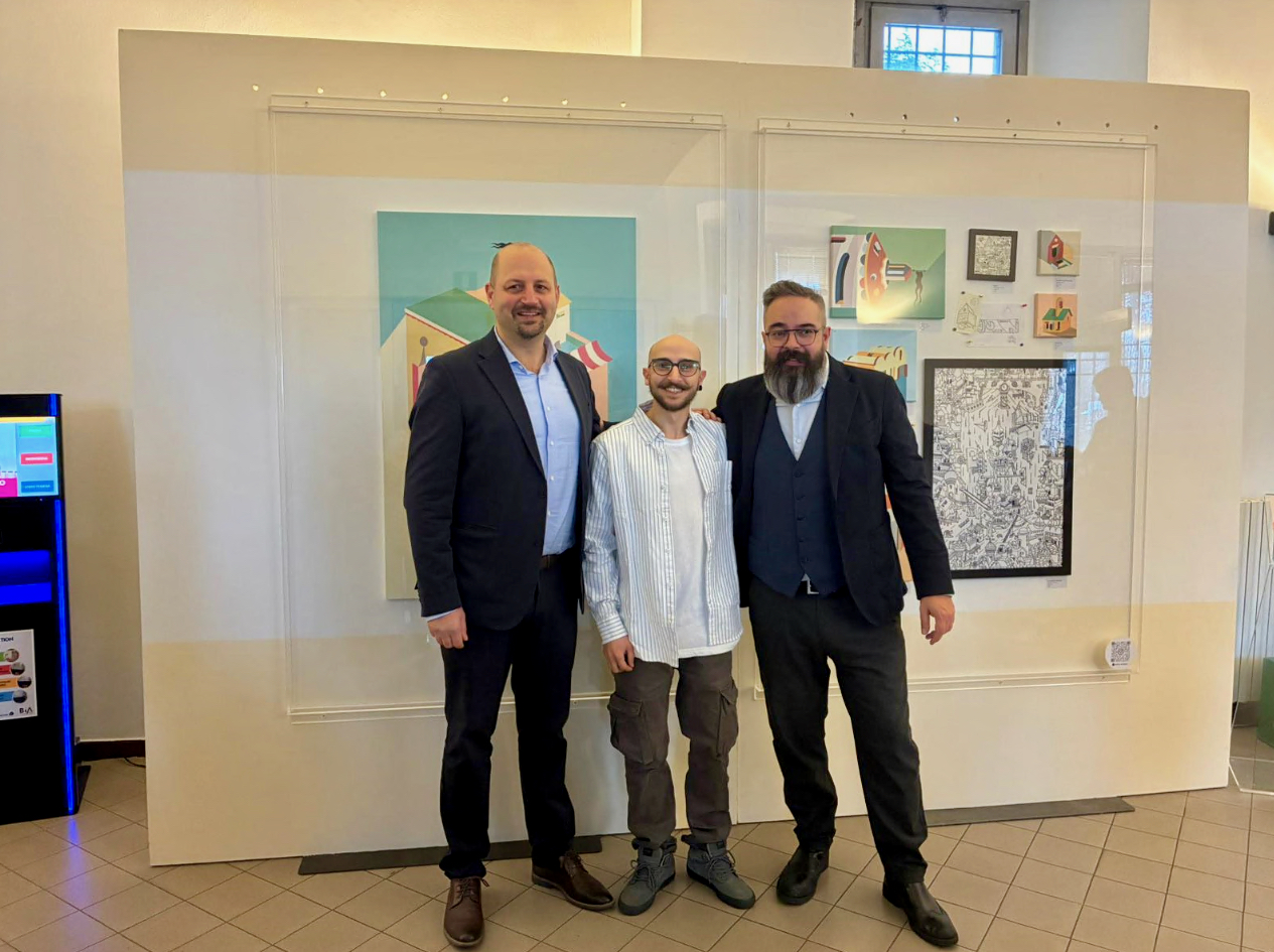 Nato e cresciuto proprio a due passi dalla biblioteca, il giovane artista classe 1993 si appassiona fin da piccolo al disegno e alle illustrazioni, che diventano il suo modo più naturale per raccontare ciò che vede e immagina. Il risultato del suo percorso è in parte raccolto attraverso i pannelli di “Quel paese”, in cui emerge l’opera chiamata “Ol Cadénù”, che omaggia la sua Alzano rappresentando Piazza Italia in uno dei suoi edifici meno rappresentativi e trasmettendo l’invito a rallentare e godersi anche gli attimi in apparenza meno rilevanti.