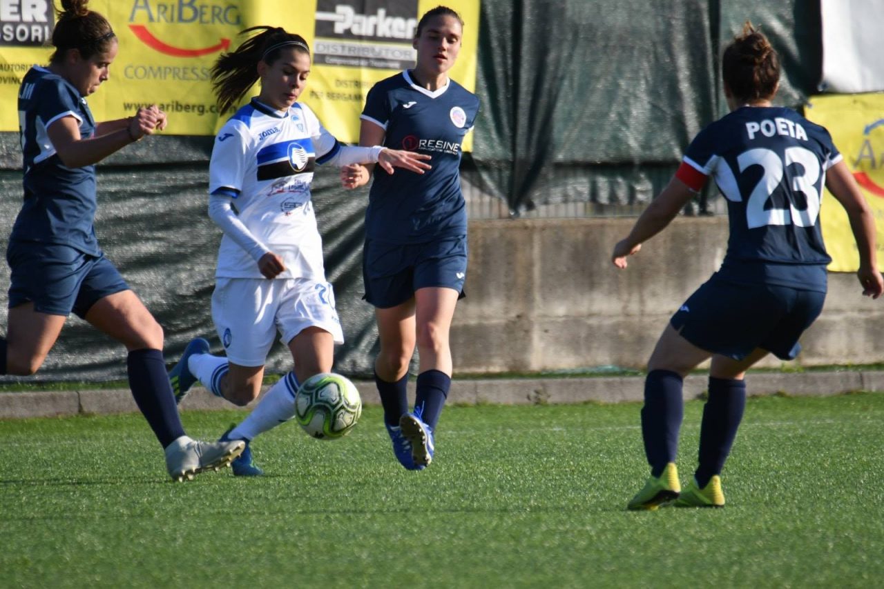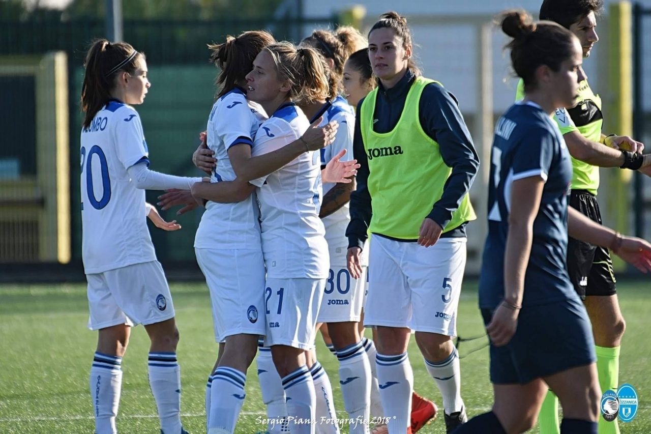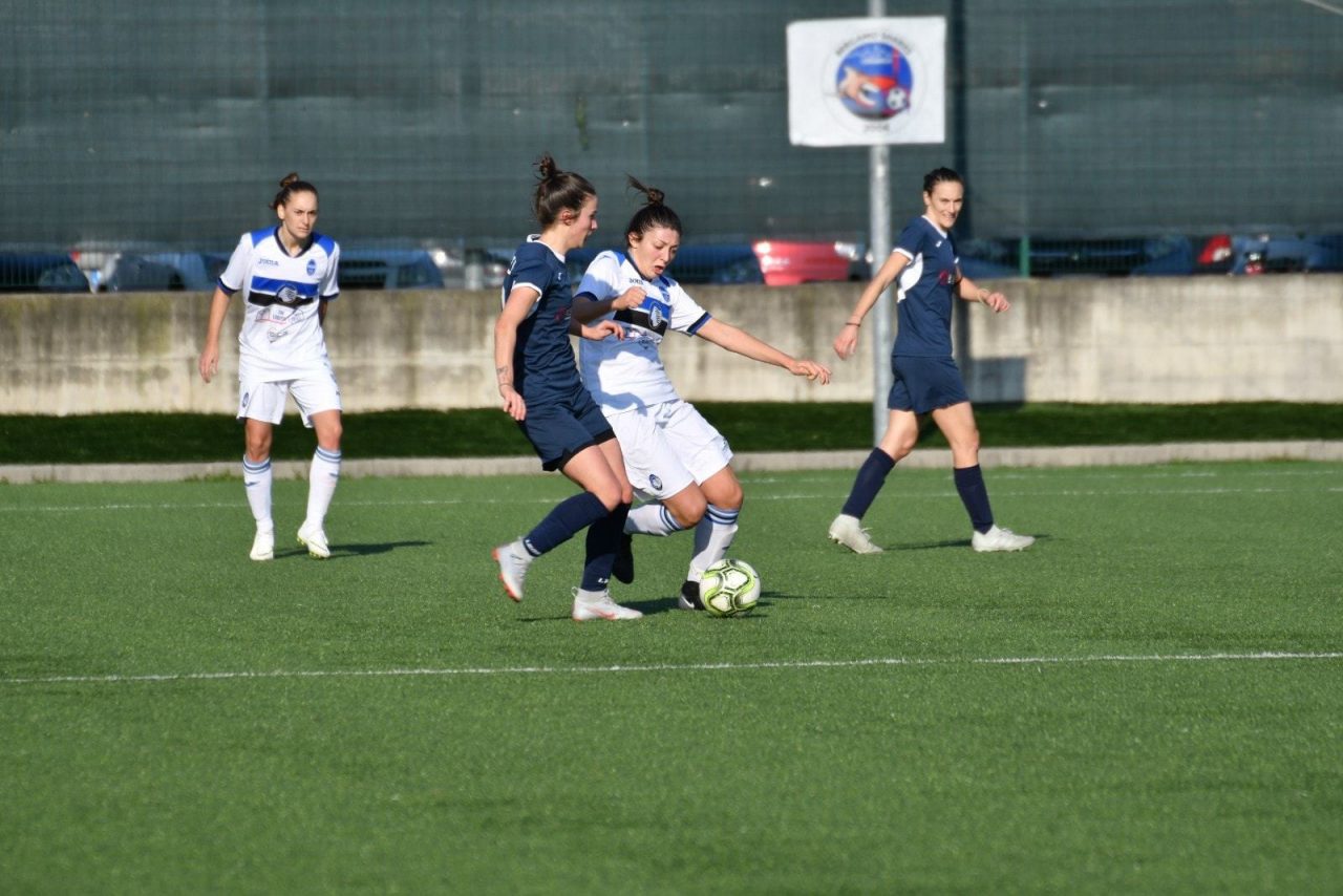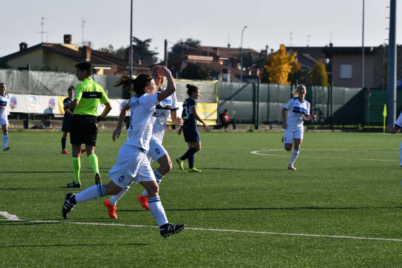 Dominio nerazzurro. Oltre a essere tre punti d’oro per le atalantine, la formazione allenata da Michele Ardito esce dal derby con un’iniezione di autostima anche per la prestazione complessiva della squadra, soprattutto nella prima frazione di gioco, nella quale le nerazzurre passano in vantaggio e sfiorano il raddoppio in più circostanze. La supremazia territoriale è legittimata al 16’ grazie al colpo di testa di Pellegrinelli, su calcio di punizione battuto dalla destra da Fusar Poli, che sigla lo 0-1. L’AtalantaMozzanica insiste e preme con veemenza sull’acceleratore, ma sbatte sull’estremo difensore dell’Orobica Lia Lonni, migliore in campo per distacco, e sui legni. Al 24’ il portiere di casa compie un autentico miracolo deviando in corner il destro di Stracchi, mentre due minuti già tardi ripete il prodigio su un colpo di tacco ravvicinato di Re. Al 33’ il raddoppio sembra maturo, ma il tentativo di Cambiaghi (che già al 2’ si era vista salvare sulla linea il pallonetto dello 0-1) si infrange sulla traversa e al 35’ ancora Lonni mette una pezza sulla conclusione di Cambiaghi.