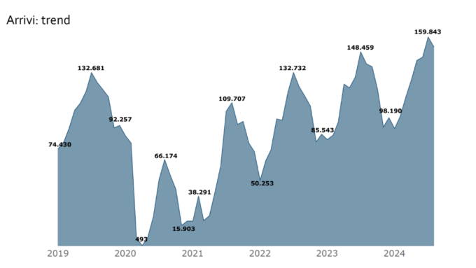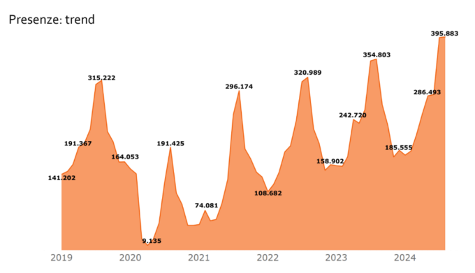 Se ci focalizziamo sui soli mesi estivi (giugno, luglio e agosto), in provincia si è registrato un aumento complessivo sia negli arrivi (+6,3 per cento) che nelle presenze (+7,1 per cento). Nella zona dei laghi, gli arrivi hanno raggiunto i 51.063 (+6,3 per cento rispetto al 2023) e le presenze i 179.749 (+22,2 per cento).