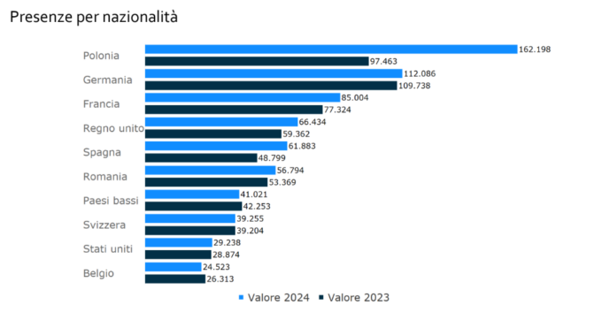 Tra le nazionalità più rappresentate spiccano la Polonia, con una crescita del 66 per cento rispetto allo stesso periodo del 2023, la Germania e la Francia. Il balzo significativo dei visitatori polacchi segnala l’efficacia delle campagne promozionali, che puntano a valorizzare le peculiarità del territorio bergamasco su scala internazionale.