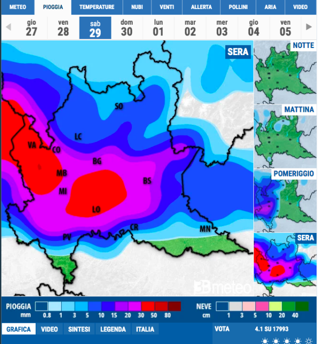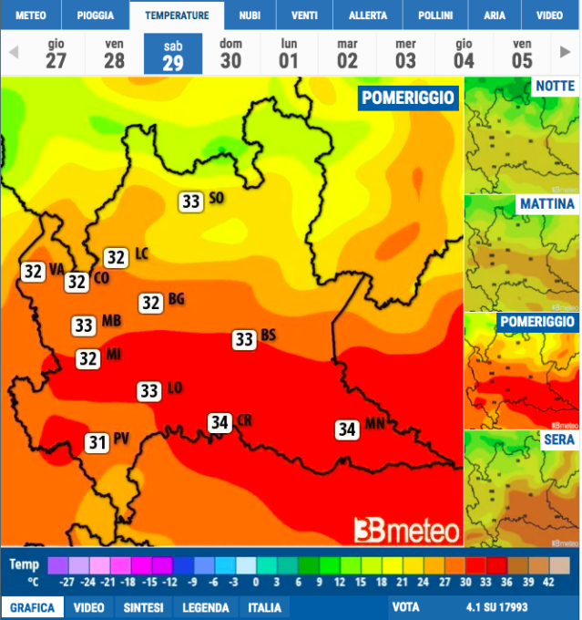 In particolare, come illustrato da 3BMeteo, lunedì 1 luglio sono previsti 34 mm di pioggia. Da martedì a giovedì continuerà poi a piovere, anche se con minore intensità (circa dieci millimetri ogni giorno). Il fine settimana successivo la tendenza è di un nuovo miglioramento.