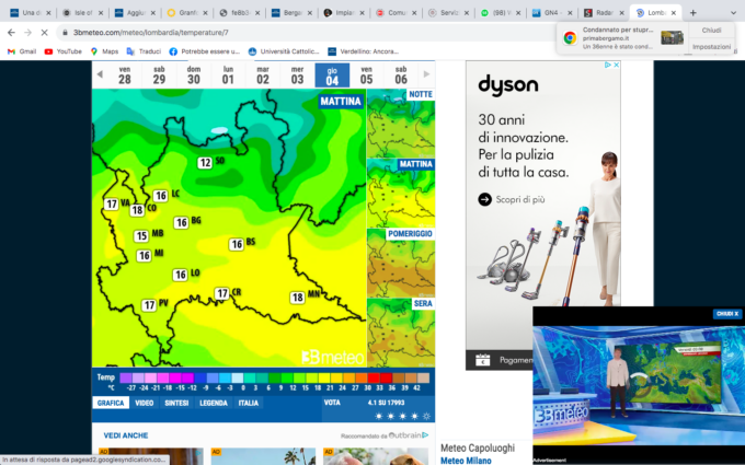Con la pioggia caleranno anche le temperature, con un ritorno alle minime tra i 14 gradi e i 17 gradi che hanno caratterizzato le mattine e le serate dei bergamaschi in questo “giugnovembre”, come chiamato da molti sui social in modo ironico, tra piogge e allerte meteo.