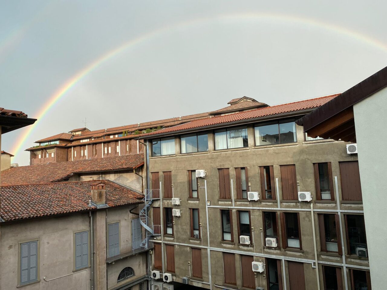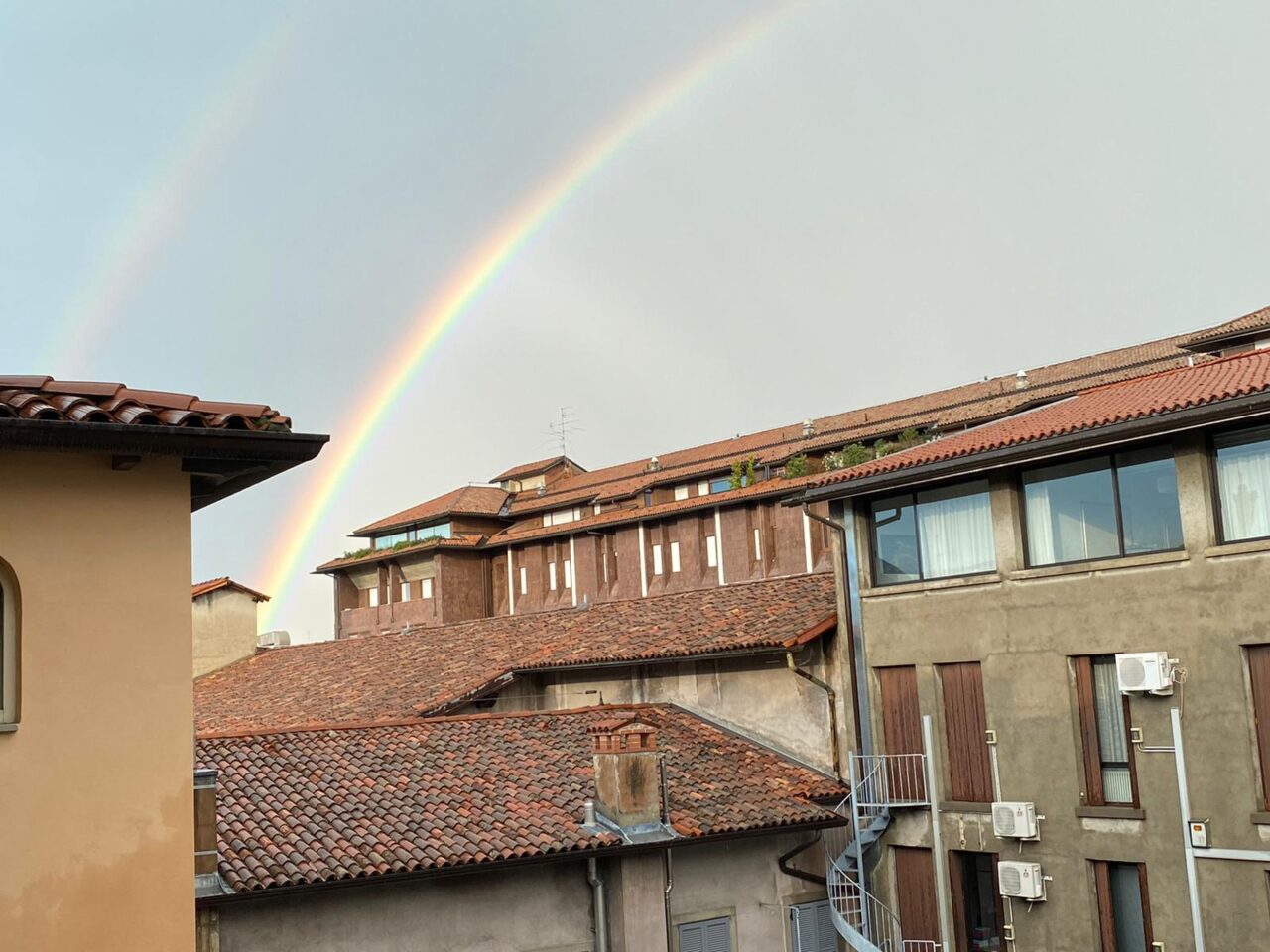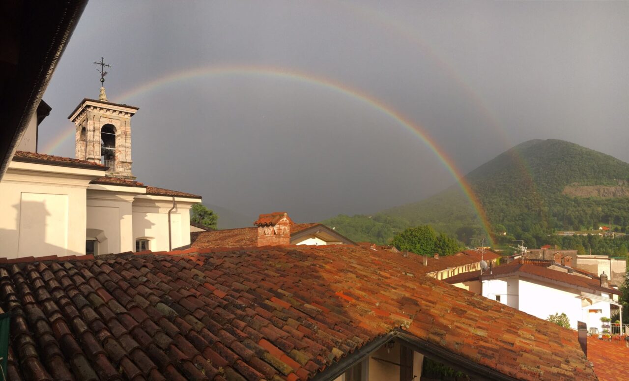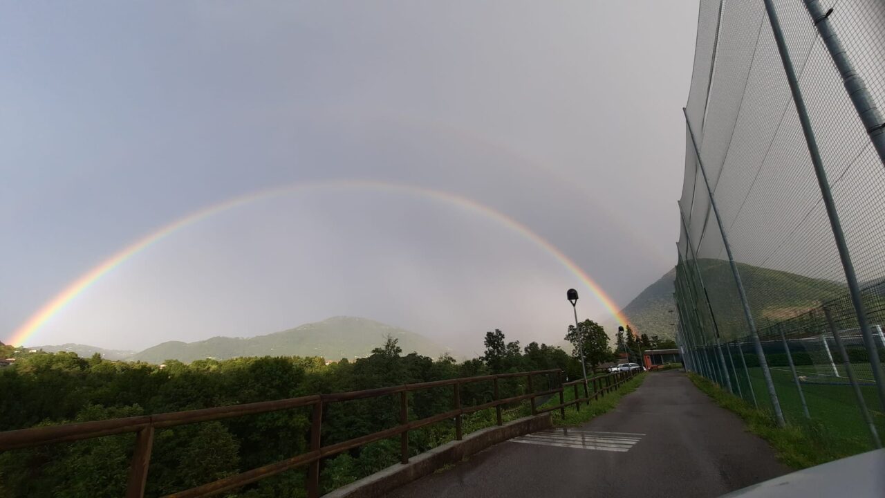 La pioggia però ha lasciato ben presto spazio al sole e all’arcobaleno: i colori dell’iride sono stati fotografati nelle Valli bergamasche: da Moio de’ Calvi a Valnegra, fino al centro sportivo Rio Re di Albino. Un doppio arcobaleno ha fatto bella mostra di sé anche nel capoluogo, risaltando su uno sfondo ancora nuvoloso e incorniciando i tetti di Bergamo.
