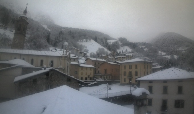 Finalmente la neve è scese anche alle quote più basse delle Orobie, fino ai mille metri. Mentre in pianura e in collina le piogge fin da ieri sera, giovedì 22 febbraio, sono state abbondanti, le maggiori località bergamasche di fondovalle si sono finalmente vestite della coltre bianca.