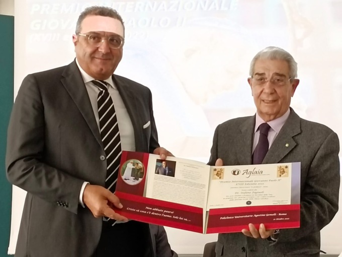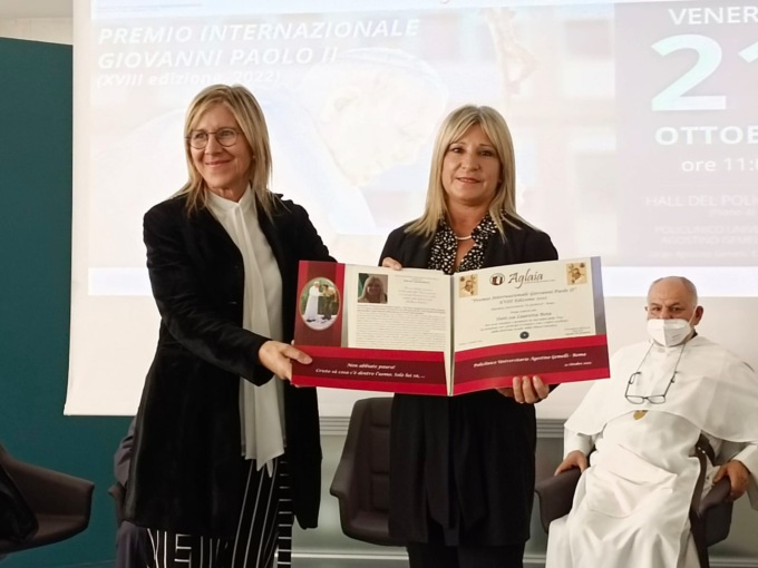 Ci sono anche due bergamaschi tra le dodici figure che hanno ricevuto il prestigioso Premio Internazionale “Giovanni Paolo II”, giunto quest’anno alla sua diciottesima edizione. Il riconoscimento è stato consegnato questa mattina, venerdì 21 ottobre, presso la Fondazione Policlinico Universitario Agostino Gemelli Irccs di Roma ai sanitari di Bergamo dott.ssa Lauretta Rota e professor Stefano Fagiuoli, rispettivamente responsabile del Dipartimento emergenza urgenza e area critica e direttore del Dipartimento di medicina dell’ospedale Papa Giovanni.