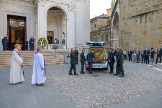 Il feretro è poi uscito dal Duomo fra ali di folla in cordoglio, fra applausi, strette di mano e pacche sulle spalle. Poi con la famiglia, in forma privata, si è diretto a Chorus Life, ultima grande eredità di Bosatelli alla città di Bergamo.
