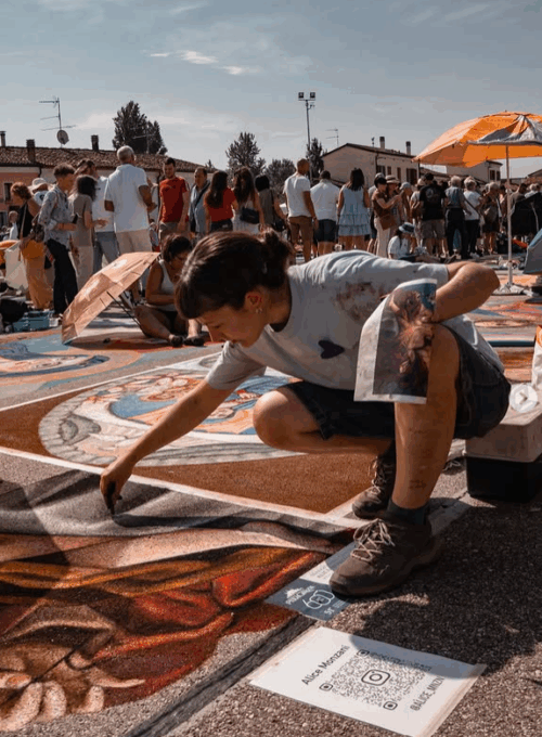 «Ricordo ancora la prima volta che mi trovai a disegnare sul sagrato di Grazie di Curtatone con mia mamma e mia sorella – ha dichiarato a L’Eco di Bergamo Giulia dopo la premiazione -. Sono molto orgogliosa di vedere dove sono arrivata. Non sarò mai abbastanza riconoscente con tutti coloro che hanno creduto in me in questi anni. Vedere gli altri madonnari commuoversi insieme a me per la mia vittoria mi ha fatto sentire parte di una grande famiglia. Poi vincere insieme a mia sorella Alice ha reso la festa ancora più speciale». L’artista di Filago ha spiegato che era il 2014 quando, appena quindicenne, iniziò a guardare i maestri madonnari con ammirazione e mai avrebbe pensato di poter arrivare al loro livello.