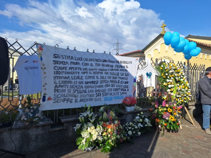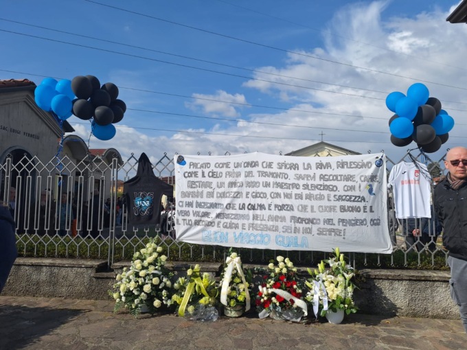Tanti anche gli striscioni scritti da amici e conoscenti di Riccardo e Nora. In uno, esposto all’esterno della chiesa e dedicato al ragazzo, c’era scritto: «Pacato, come un’onda che sfiora la riva, riflessivo come il cielo prima del tramonto. Sapevi ascoltare, capire, restare, un amico raro, una maestro silenzioso. Con i bambini eri dolcezza e gioco, con noi eri rifugio e saggezza. Ci hai insegnato che la calma è forza, che il cuore buono è il vero valore. Nerazzurro nell’anima, profondo nel pensiero, oggi il tuo ricordo è guida e presenza, sei in noi, sempre! Buon viaggio Guala».