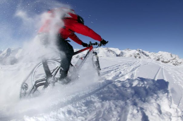 Se non volte rinunciare alla vostra mountain-bike anche sulle piste, procuratevi un ktrak. Il nome è tutto un programma, ma l’attrezzo potrebbe rivelarsi molto utile. Consiste in uno sci da fissare sulla ruota anteriore della bici e in un meccanismo da montare su quella posteriore che servirà a scaricare sullo sci la forza delle pedalate. Cinghia in poliuretano rinforzato, braccio in magnesio: questo kit trasforma la tua bici in un vero bulldozer da neve.