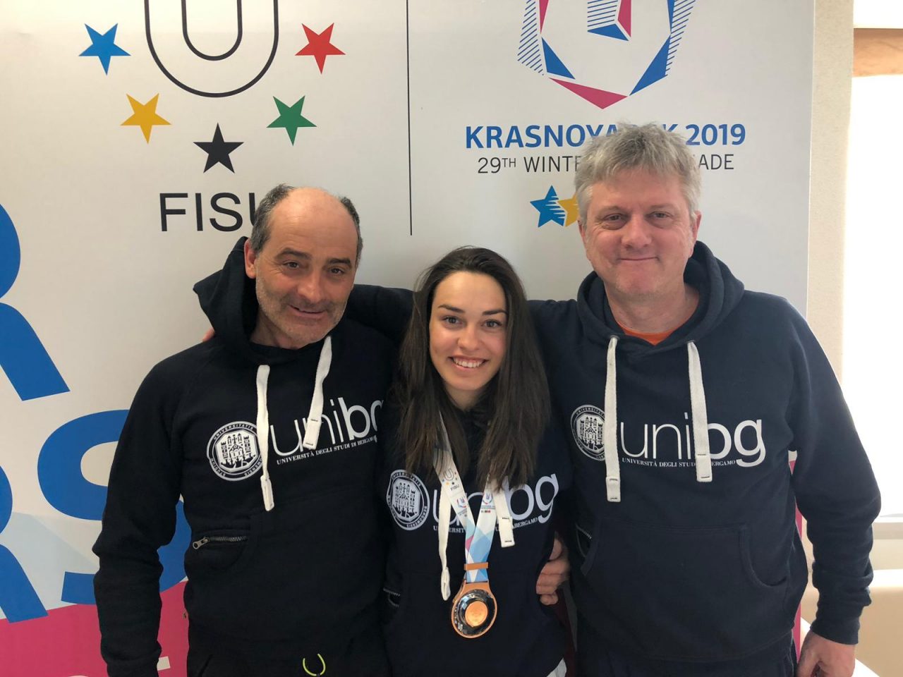 «Sentivo il bisogno di questa medaglia – dice Martina -, l’ho cercata, l’ho fortemente voluta. E ora sono felice. Che emozione rappresentare la mia città, il mio ateneo e salire sul podio. Non è stata un’annata semplice, ma adesso ho capito cosa non è andato e su cosa devo lavorare per crescere, cercando anche delle figure professionali particolarmente funzionali per aiutarmi a raggiungere gli obiettivi». Obiettivi che, parallelamente alla neve, portano dritti ai banchi dell’Università di Bergamo, visto che Bellini è iscritta al secondo anno di Economia e Commercio e, nel suo percorso, può fare leva su “Dual Carrier”, il progetto dell’Università degli Studi di Bergamo che permette agli atleti di studiare anche durante la stagione agonistica coadiuvati da un tutor messo a disposizione dall’ateneo che li segue sia nella programmazione che negli esami. Perché è proprio la programmazione uno dei punti-cardine: «Il tempo libero non manca – prosegue -, ma bisogna riuscire a organizzarsi con ampio anticipo perché è impossibile ottenere voti all’altezza se ci si prepara in extremis tra allenamenti e gare, specie per un calendario molto discontinuo».