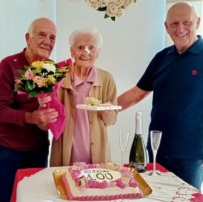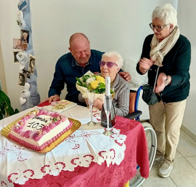 Vittoria, pettinata con cura e vestita a festa, con collana e orecchini di perle, spegne 102 candeline; Oliva, sorridente nella sua camicetta rosa elegante, celebra un secolo esatto; Giannina, la più anziana, ha raggiunto le 103 primavere. E poi c’è Ester, la più giovane, che di anni in realtà ne compie 99, ma è la veterana della struttura dove vive dal 2013.