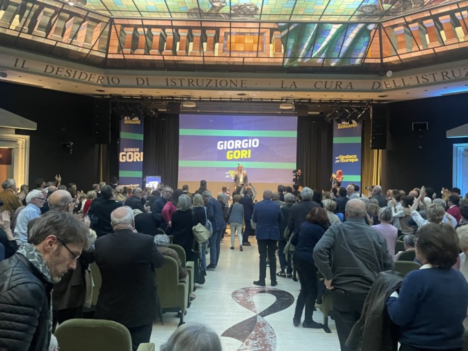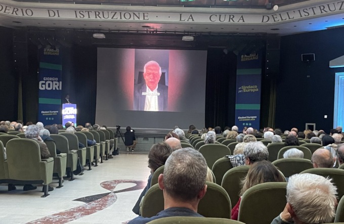 L’intervento del segretario provinciale è stato solo il primo di una lunga serie di discorsi in appoggio al candidato, sia in presenza, sia in forma di contributo video, introdotti di volta in volta da Gori, che si è poi tenuto gli ultimi venti minuti per il suo discorso finale. La candidata sindaca per il centrosinistra, Elena Carnevali, ha sottolineato: «Le prossime elezioni saranno decisive, in Europa e a Bergamo. Giorgio è un’opportunità per l’Europa, per noi bergamaschi e per tutti gli altri cittadini, perché per lui la politica non è potere, ma è futuro». E sul fatto che la presenza di Gori possa essere un «vantaggio per tutti» è tornata anche Pia Locatelli, ex parlamentare europea, che ha voluto essere presente e sostenere Gori «per amicizia; perché sono convinta che farà bene; perché quello dal locale a un livello più alto, è un passaggio logico».
