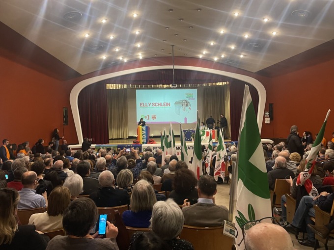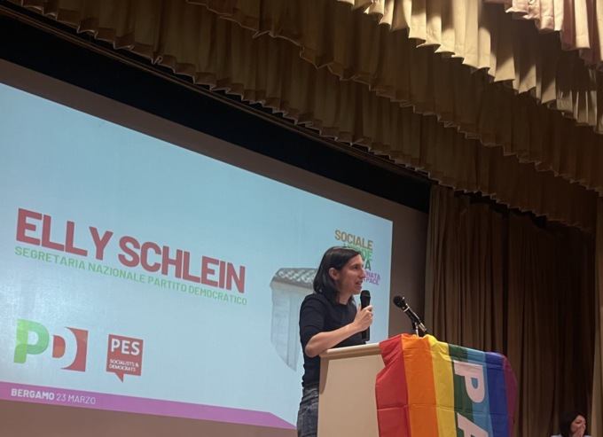 La segretaria nazionale del Partito Democratico, Elly Schlein, è salita sul palco della Casa del Giovane a Bergamo mentre alle sue spalle sfumava il video-racconto della Marcia per la pace dello scorso 7 maggio. La politica è stata ospite in città in occasione dell’evento di oggi pomeriggio (sabato 23 marzo) intitolato L’Europa che vogliamo: sociale, verde, giusta e impegnata per la pace davanti a una platea nutrita, di oltre 350 persone (tante erano quelle sedute, ma molte altre erano in piedi).