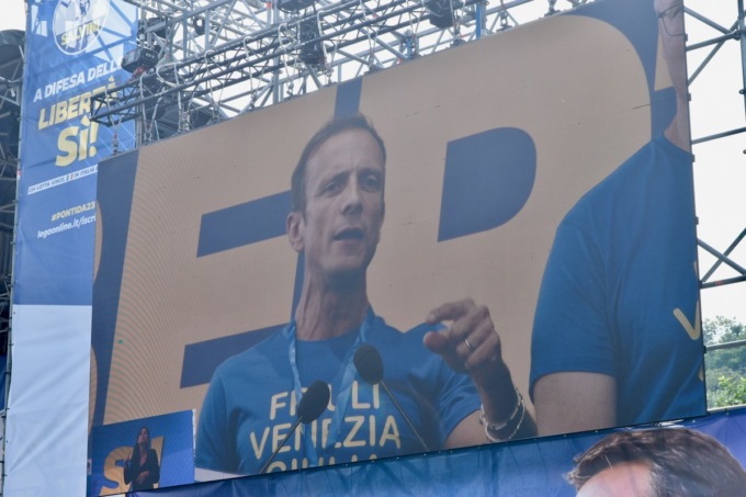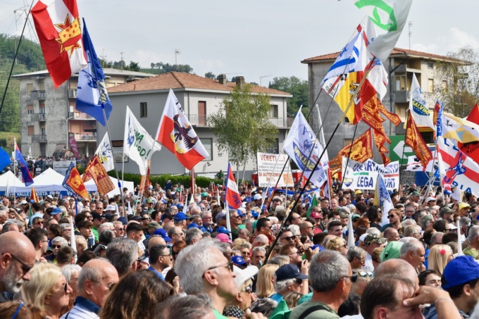 Zaia, con quel suo accento veneto inconfondibile, parla «del Leone di San Marco incazzato». Fedriga, con quel suo parlare a scatti, batte sulla concretezza e il pragmatismo del Carroccio. Il compassato Giorgetti non è uno da palco, Calderoli assicura che il 2024 sarà l’anno dell’autonomia. Molinari racconta, un po’ messianicamente, «di un popolo in cammino». Ma la verità è che Salvini oggi è la Lega, un po’ come lo era Bossi (peraltro ringraziato) all’inizio. E’ Salvini che ha i voti. Lui che incarna in tutto e per tutto il movimento.