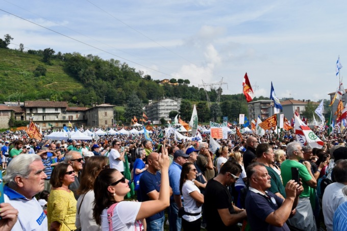 Ma non è stato solo folklore quelle che si è visto sotto il sole cocente. Tutto o quasi è filato per il verso giusto, nonostante le code sulla provinciale. Peccato per il discorso di Le Pen, fortemente penalizzato dalla traduzione in simultanea che sovrapponeva le voci, rendendole quasi incomprensibili.