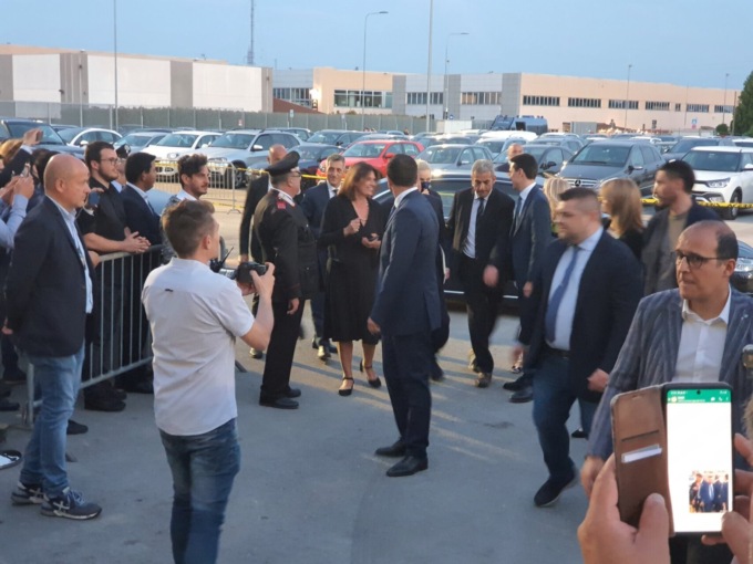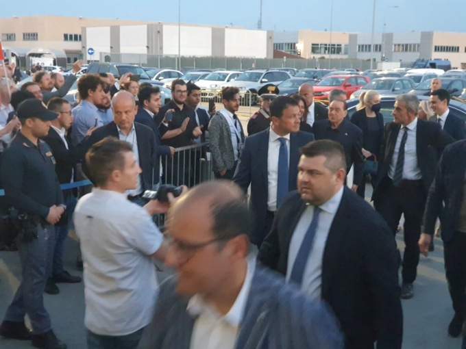 La serata si è aperta alle 20.40 circa con l’inno di Mameli. Quindi l’arrivo di Berlusconi, accompagnato dalla compagna  e deputata di FI Marta Fascina.