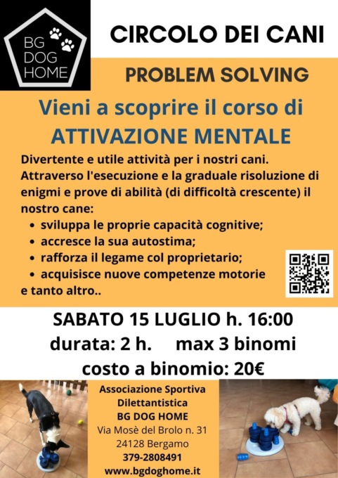 Gli amici di BG DOG HOME ci salutano ricordando che proseguono gli inserimenti di nuovi pet all’asilo ed i corsi di Problem Solving (attivazione mentale) adatti a tutti i cani. A settembre partiranno nuovi corsi tra cui anche la Psicomotricità o “mobility” attività sportiva ludica per tutti i cani che si inserisce nel normale programma educativo.